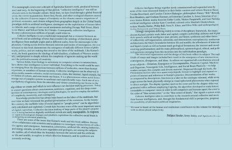 Collective Intelligence is an innovative monograph that documents the last ten years of Polish-born conceptual artist Agnieszka Kurant's interdisciplinary practice. It also includes newly commissioned texts by renowned thinkers in science, philosophy, technology, anthropology, and economics. Dispersed throughout the book, the Phenomena section adopts a quasi-encyclopedic format to highlight and expand on Kurant’s research on collective intelligence.