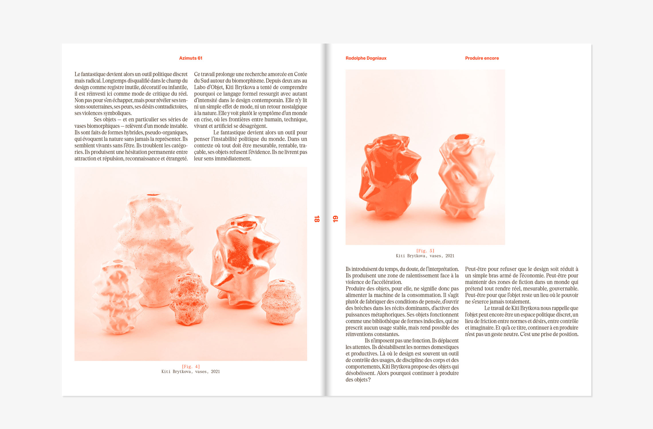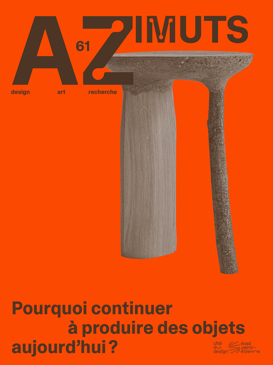 Azimuts is a design research journal founded in 1991 by the student-researchers of the post-graduate program of the École supérieure d'art et design de Saint-Étienne. A unique publication in the design editorial landscape, the journal is a place for reflection, exchange, and criticism on the issues of contemporary design and art, as well as a field for experimentation and graphic and typographic research. Azimuts magazine gathers the points of view of personalities from the world of design, culture and research in general. The issues are organized around thematic dossiers on design and, more generally, on material culture or its criticism. The "Varia" section welcomes contributions that are not part of the dossier, and the "Anthology" section allows readers to discover or rediscover texts and documents that are difficult to access (out of print or never translated into French). The "Reviews" section is a space for free criticism of current research and publications on design in the field.