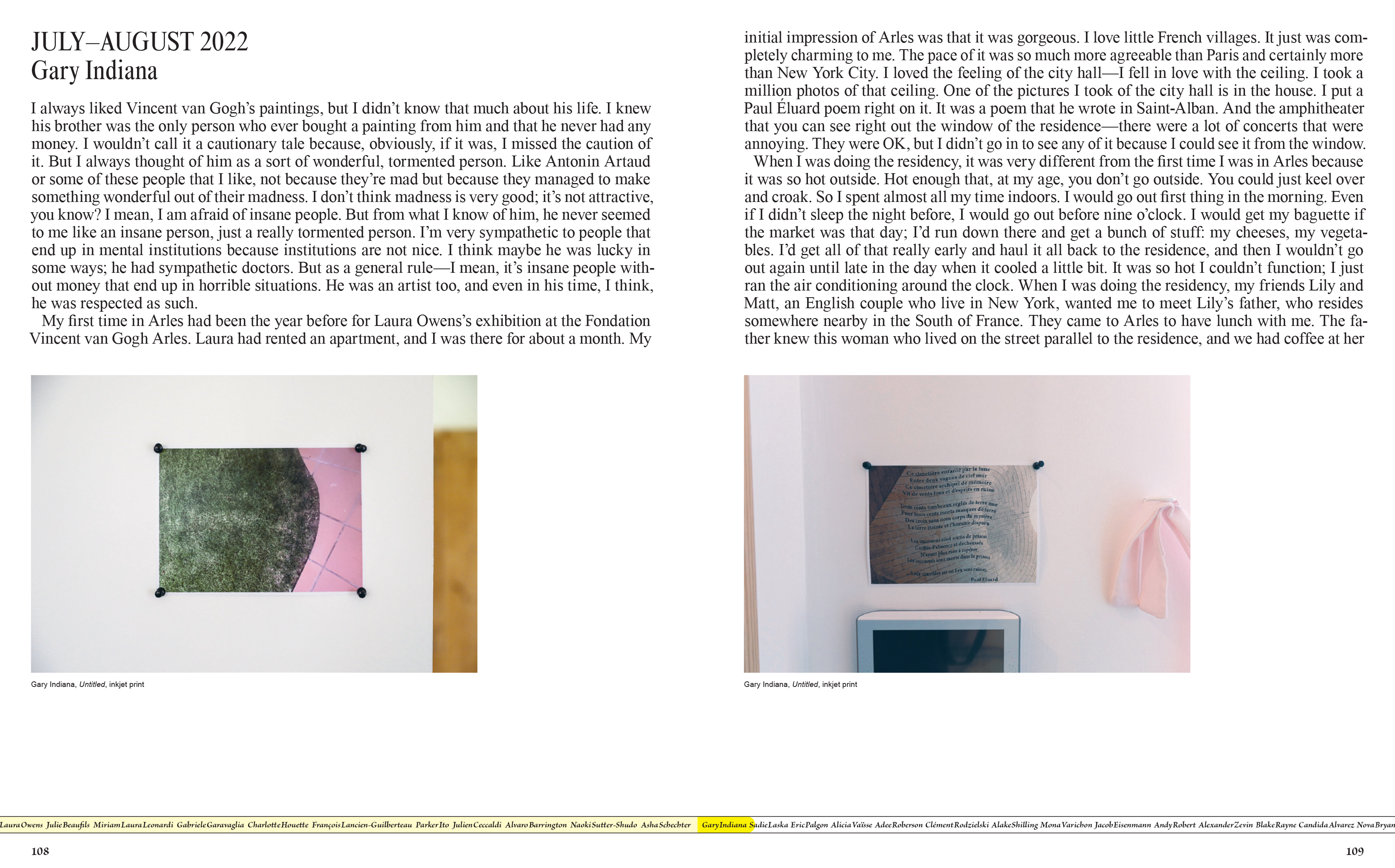 Contributions by Laura Owens, Maja Hoffmann, Bice Curiger, Julie Boukobza; and Candida Alvarez, Alvaro Barrington, Julie Beaufils, Nova Bryan, Julien Ceccaldi, Jacob Eisenmann, Gabriele Garavaglia, Charlotte Houette, Gary Indiana, Parker Ito, François Lancien-Guilberteau, Sadie Laska, Miriam Laura Leonardi, Eric Palgon, Blake Rayne, Adee Roberson, Andy Robert, Clément Rodzielski, Asha Schechter, Alake Shilling, Naoki Sutter-Shudo, Alicia Vaïsse, Mona Varichon, Alexander Zevin.