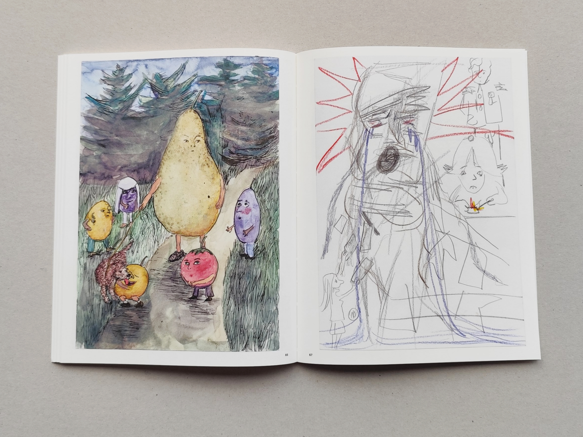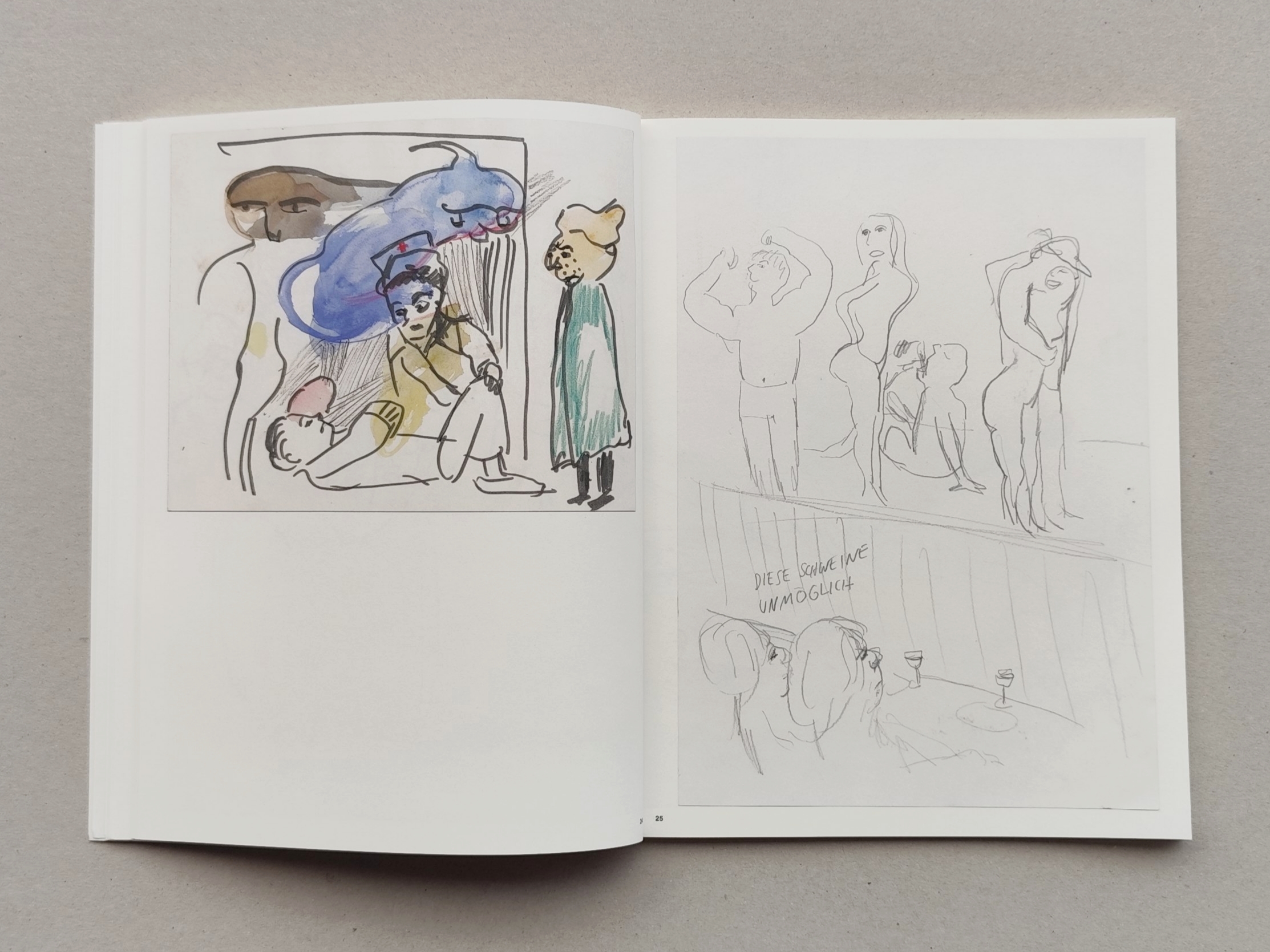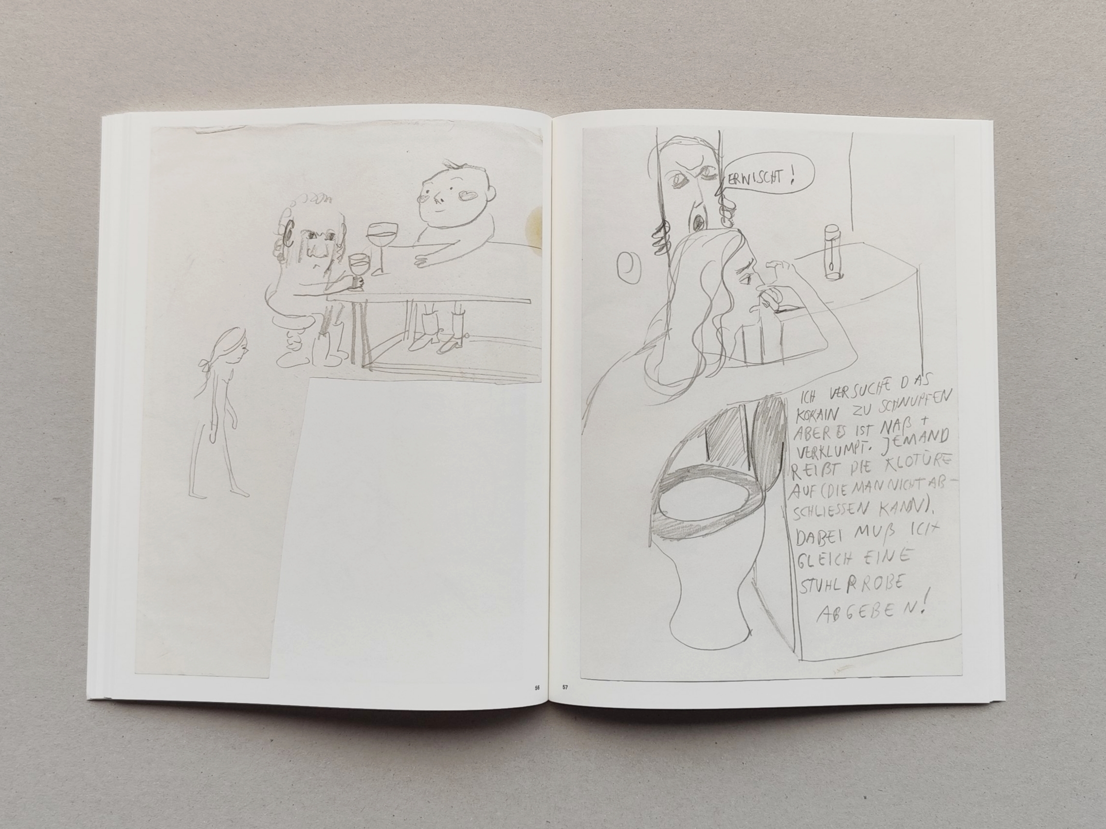 To mark her exhibitions at the Kölner Kunstverein and HFKD Holkstebro, Bierke Verlag is now publishing this collection of very direct and heterogeneous drawings, driven by a need to stay as close to the truth as possible. They deal with dreams and inner experiences, depicting generational conflicts, sexuality, death, and strong emotions with unfiltered harshness.