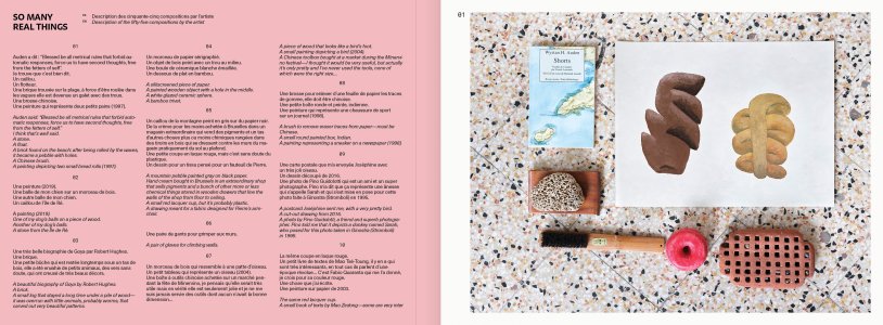 Conceived as a studio notebook, this book brings together a series of compositions by Nathalie Du Pasquier, created directly on the floor of her studio in Milan. Everyday objects, drawings, books, photographs—each composition is made up of carefully chosen elements, like fragments of an intimate language. These visual arrangements, both precise and instinctive, reveal her way of combining forms and colours, of creating dialogues between things, in a balance specific to her pictorial practice. They offer a rare glimpse into her world—an off-screen view of her work.