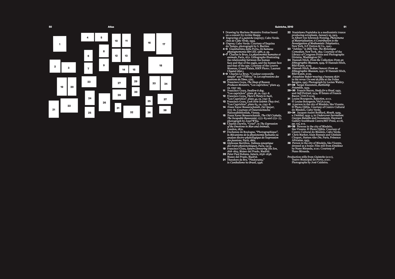 This book offers a lens onto the dazzling oeuvre of a choreographer whose boldness shakes the foundations of every theater she enters. It centers on five emblematic works: Guintche (2010), Paradise—Private Collection (2012), Jaguar (2015), Bacchae—Prelude to a Purge (2017), and Mal—Embriaguez Divina (2020). It follows Monteiro Freitas's creative methodology, weaving references from her personal archive together with works from art history, navigating between ideas and possibilities in the manner of an atlas bearing the weight of the world. From wonder emerges a mode of attentive reading; one capable of observing and, out of fragments, revealing the methods, processes, and mechanisms of art. The texts in this book are "small critical machines for reading the unreadable."