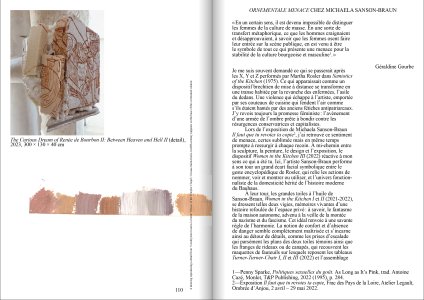 This book, the first dedicated to the work of Michaela Sanson-Braun, traces thirty years of practice across Germany, London, and France. Bringing together paintings, drawings, collages, sculptures and installations, it also features sixteen paintings conceived especially for this publication and printed on uncoated paper. Like a Russian doll, they create a mise en abyme of the book's own making, blurring the line between documentation and artwork.