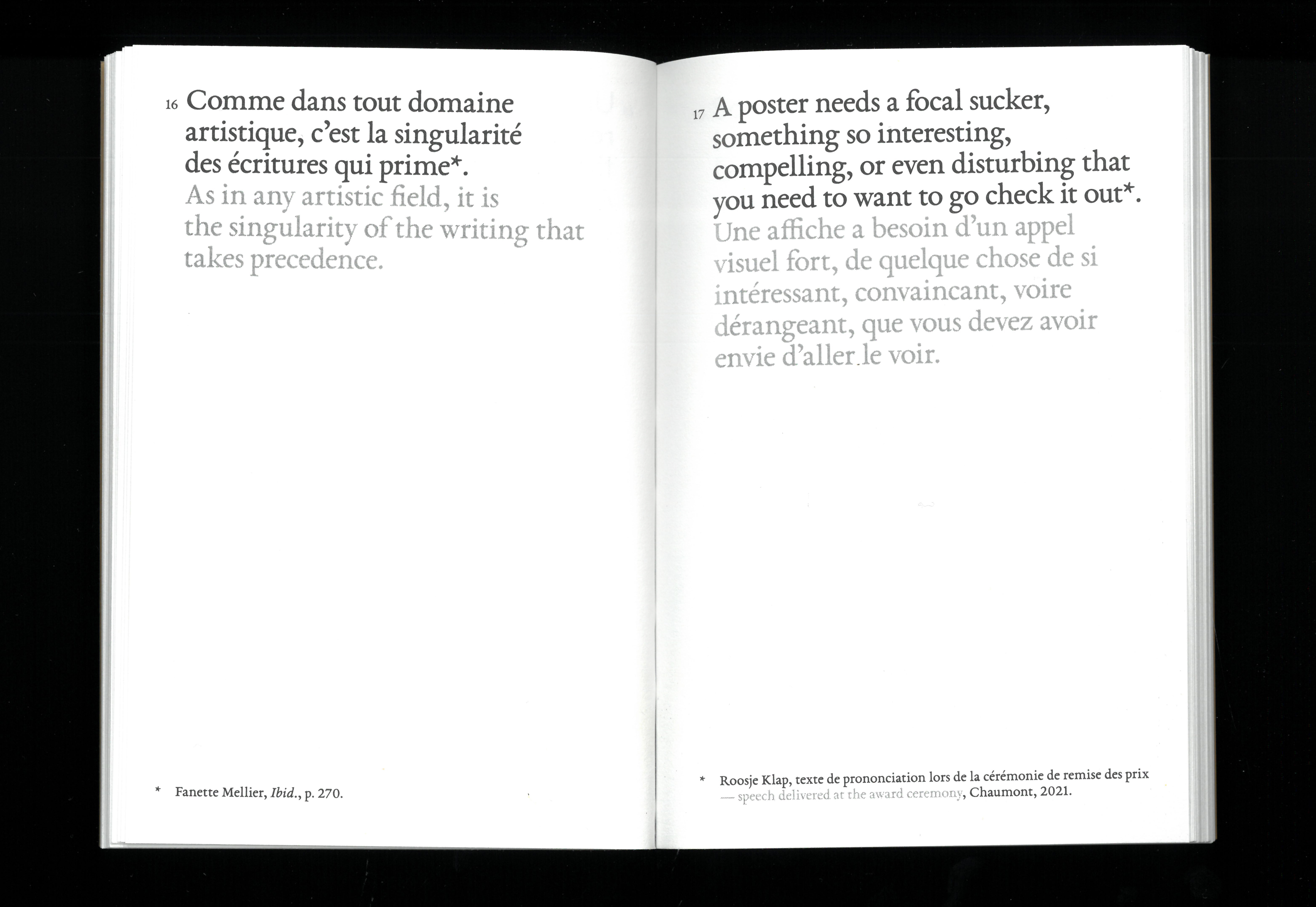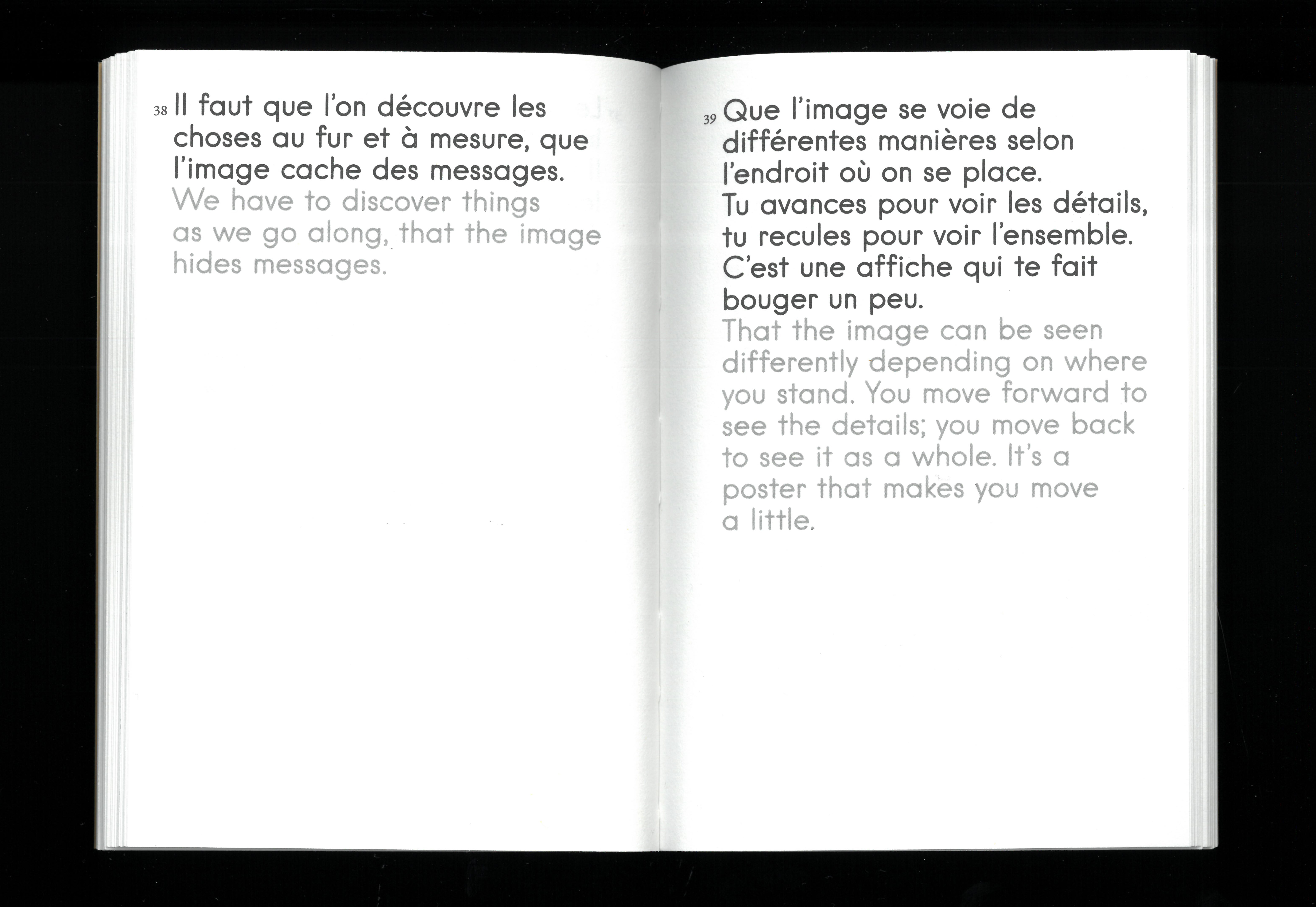 This book takes as its starting with the question "What is a good poster?"' and then gradually drifts away from it as it unfolds, confronted with the complexity of this question that pertains to the truth, accuracy, functionality or even the good taste of a graphic work.