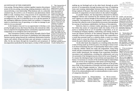 Focusing on contributions that explore composites as forms of art and design, as research methodologies and practices, and/or as theoretical concepts, issue 60 of the journal Azimuts proposes look at composites as a way of presenting or representing realities.