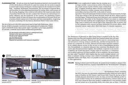 Designer Cécile Poulat treats composites as a narrative system of the situated stories of the stratified spaces that constituted them, starting with a case study: plywood, recovered from the dismantled World Trade Center building in Brussels. She also approaches it as a system allowing the recomposition of new relationships between objects, people, and architectural and urban spaces.