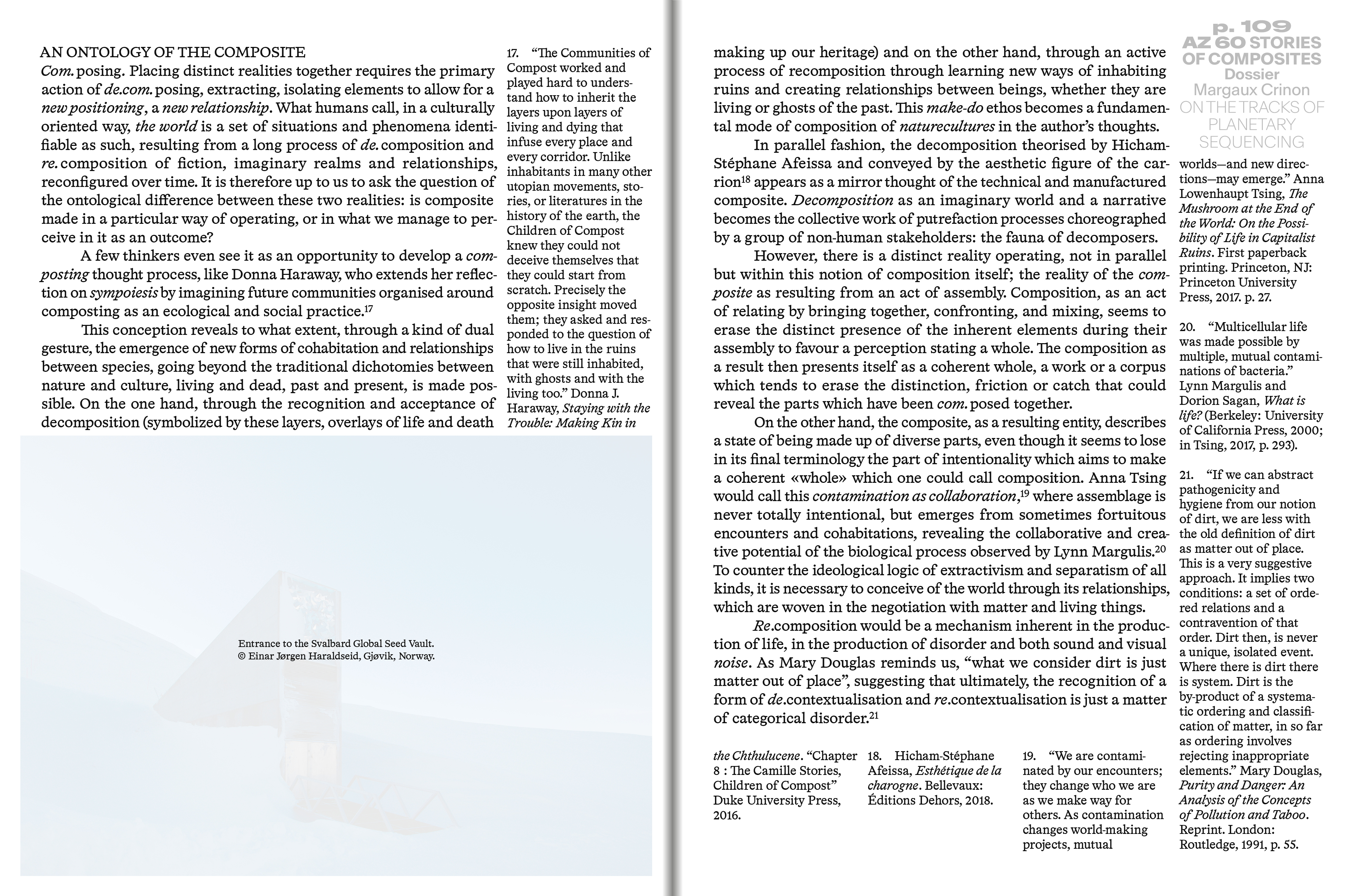 In her article, interaction designer Margaux Crinon, drawing a bold parallel between the sampling gesture proposed by the Akai MPC 60 and the sampling gesture orchestrated by researchers in the Svalbard Global Seed Vault, invites us to perceive composite as an ecological practice.