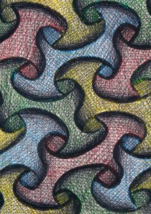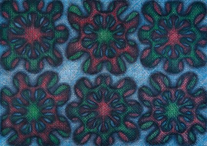 Album is composed of six loose A3 sheets, folded in half and assembled at random. The individual sheets can be taken apart and framed. Each sheet features a full color ink and wax crayon drawing on one side and a black and white, brush and ink one on the other. Together, they form an anthology of Sam Porritt's drawings of the last twenty years.
