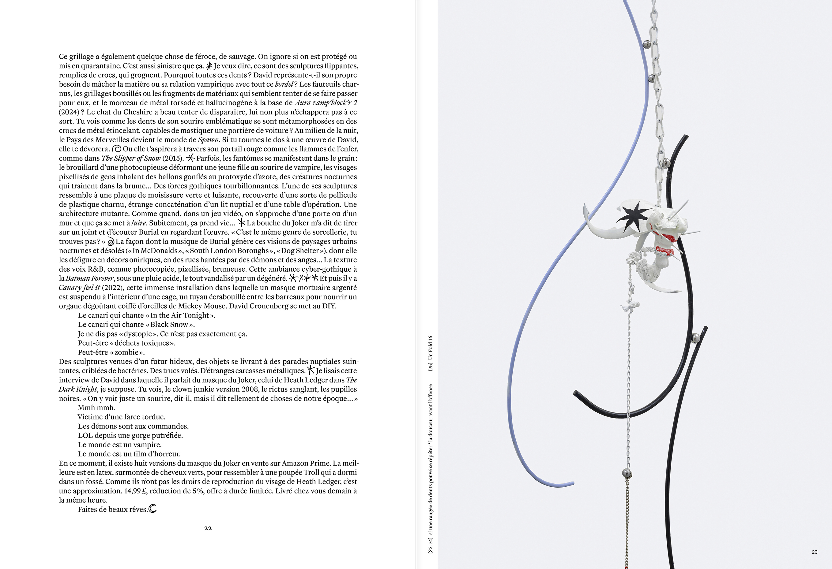 Language is the very basis of his work. The texts and poems he collects on the Internet are manipulated, transformed in order to become a vital flow, feeding into his sculptures. Through language as an ingredient, David Douard redefines space as hybrid and collective by injecting anonymous, chaotic, deviant, ill and frustrating poems in it. As he recreates an infected environment where the real world used to be, the fantasy brought by new digital technologies expands.