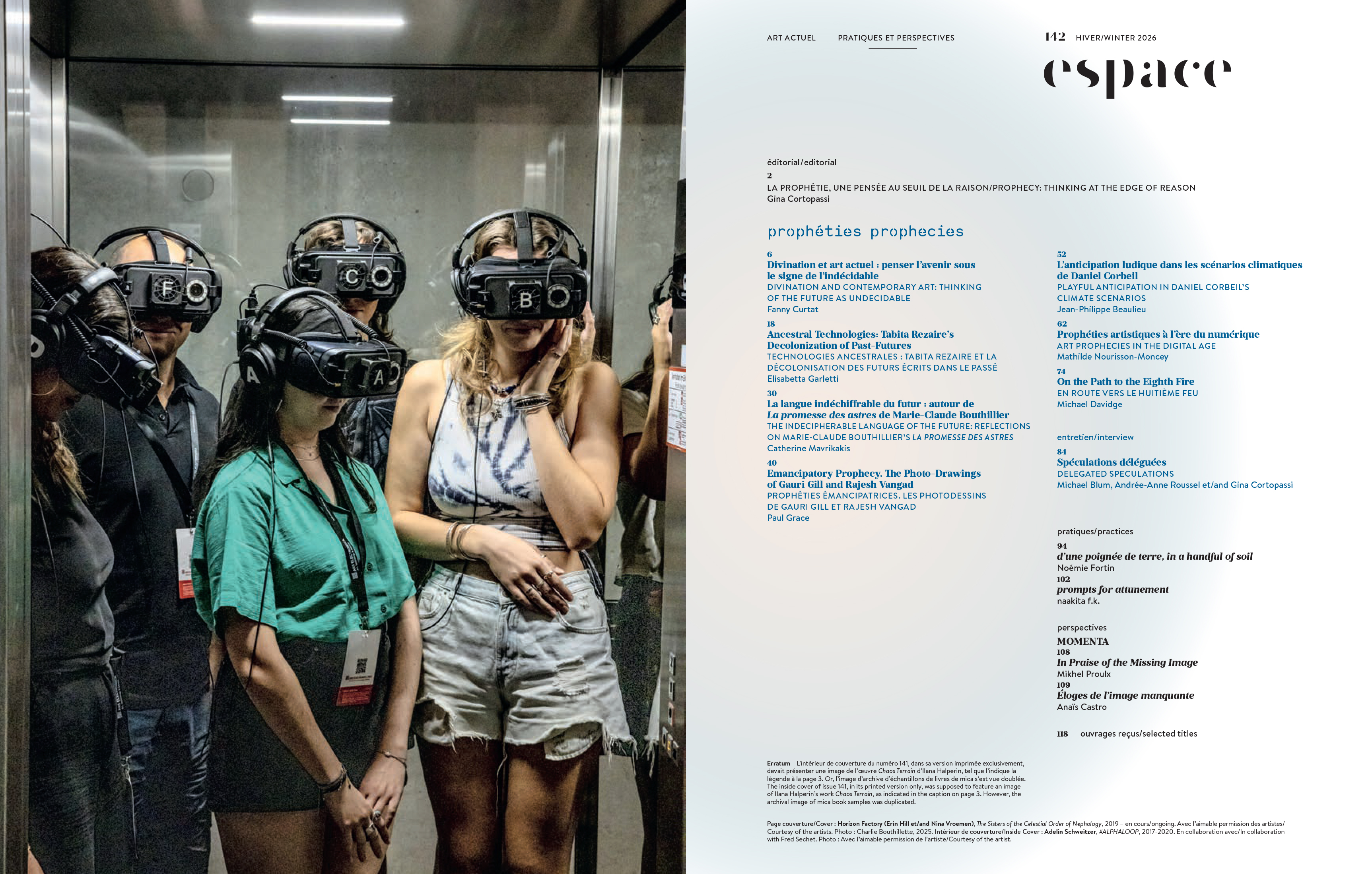 Espace art actuel # 142, focusing on the theme of "prophecies" in contemporary artistic practices.
