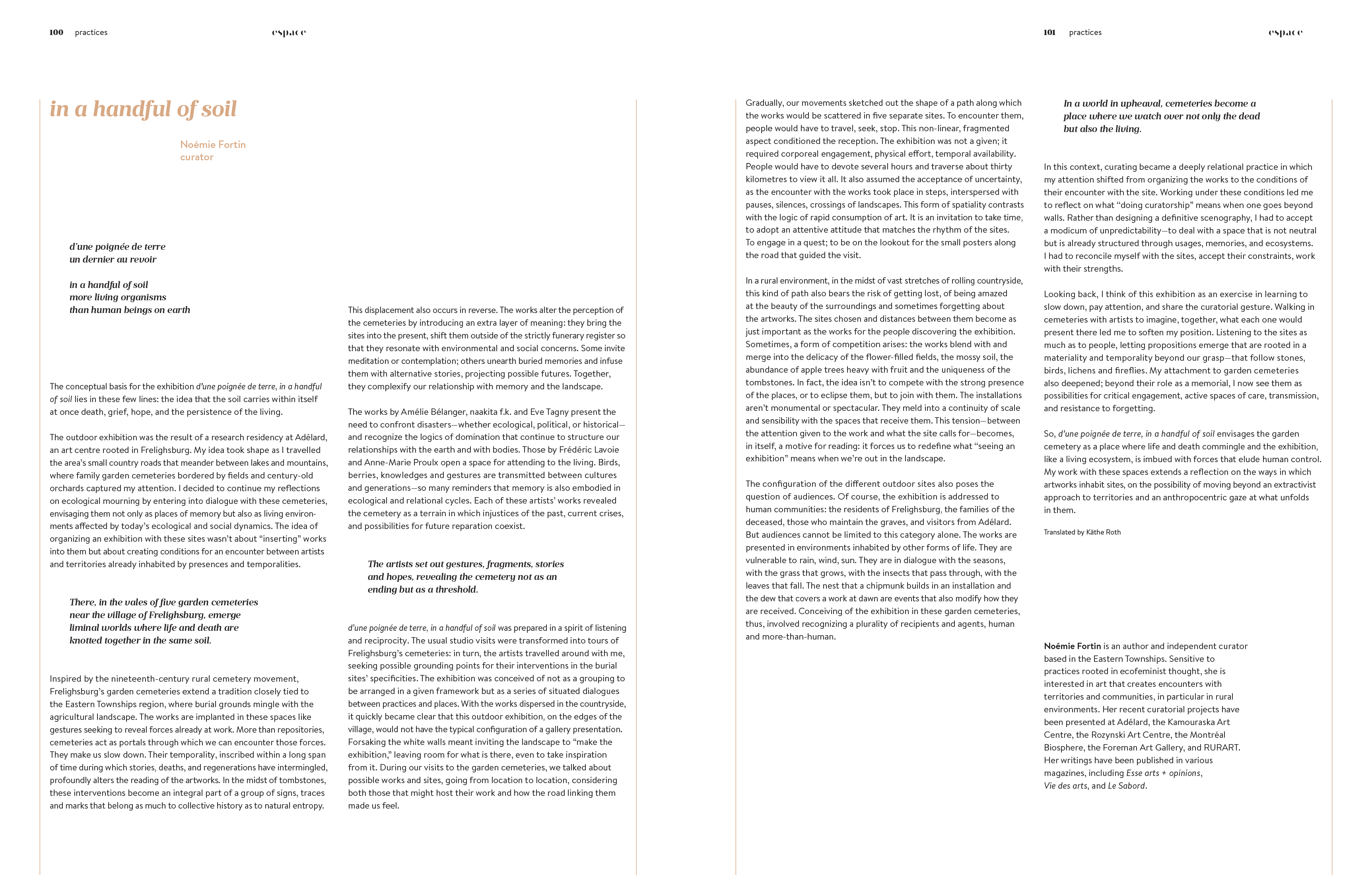 Founded in 1987 in Montreal, led by André-Louis Paré since 2013, Espace art actuel is an essential bilingual magazine for the promotion of contemporary art in the field of sculpture, installation and all other art forms associated with the notion of spatiality.