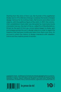 Starting from the story of Ann Lee, the founder of the egalitarian Shaker sect in 1774, Witches of Design combines the tenets of Shaker design–famous for its rocking chairs, flat brooms and other iconic objects–with the seditious figure of the witch. In 1837, the community's established ritual order was disrupted by impromptu bouts of ecstatic trances–the start of the so-called Era of Manifestations. Driven by the spirit of Ann Lee, unruly sisters began to shake, spin and misappropriate the sect's design objects in order to regain the freedom that had been insidiously taken from them over time. An account in which the history of design intersects with rebellion, trance and the creative power of women.