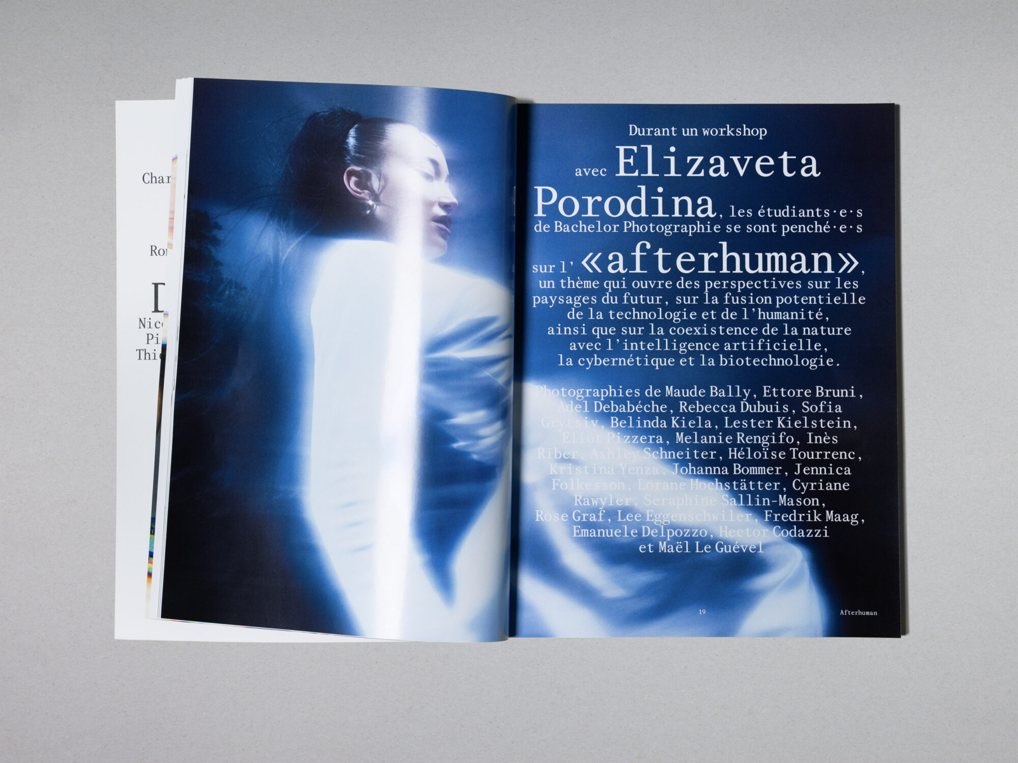 ECAL (Lausanne University of Art and Design). Produced by the students, it presents a glimpse of the current events of the year: workshops, masterclasses, exhibitions, trips, etc., through interviews and portfolios. Each issue is structured around a thematic dossier, which is an opportunity to examine an issue from different points of view. Finally, reviews of diploma theses (Visual Arts, Cinema, Graphic Design, Industrial Design, Media & Interaction Design, Photography) complete the set. The artistic direction of each issue is also renewed, giving the paper version its specificity.