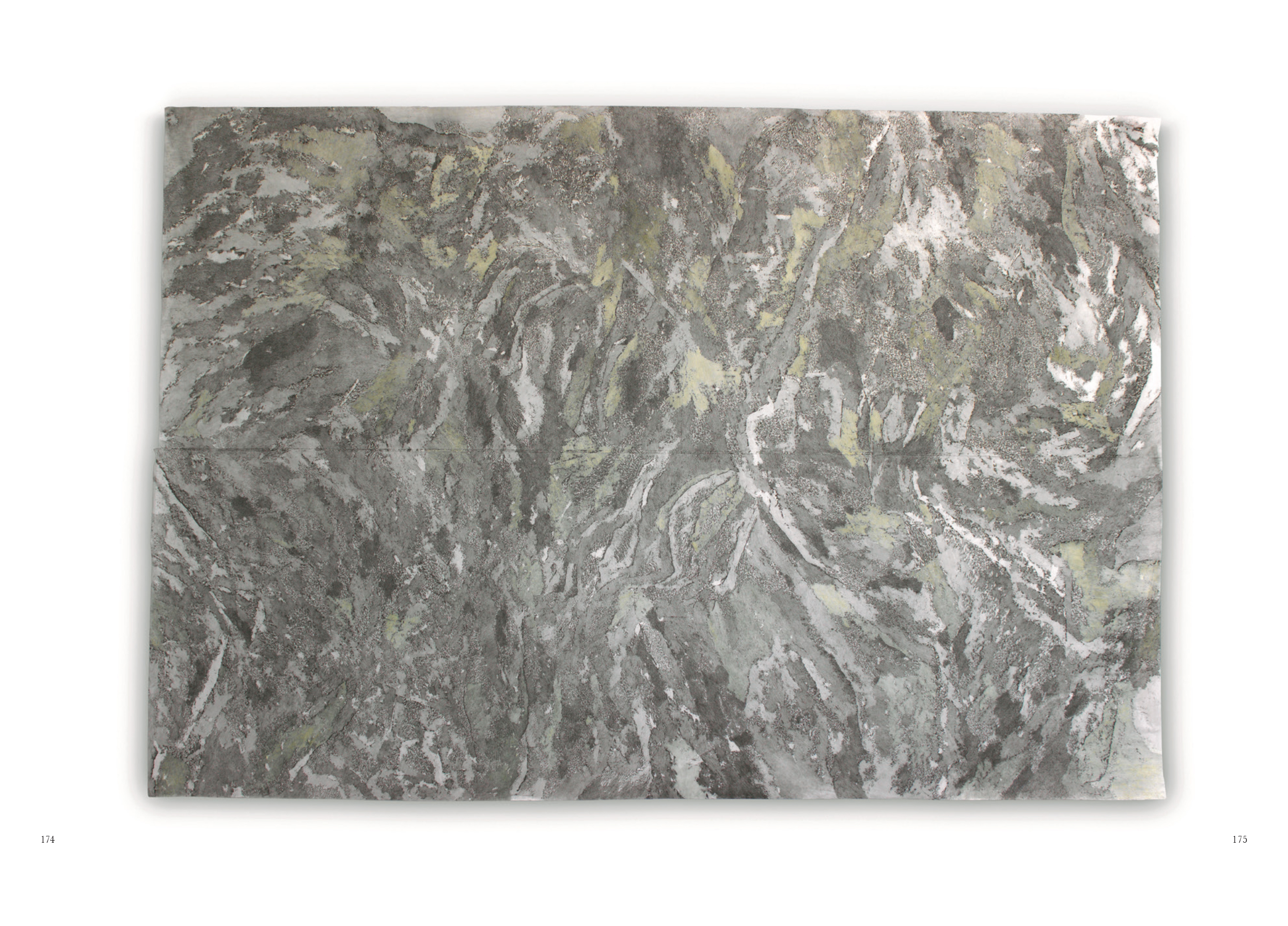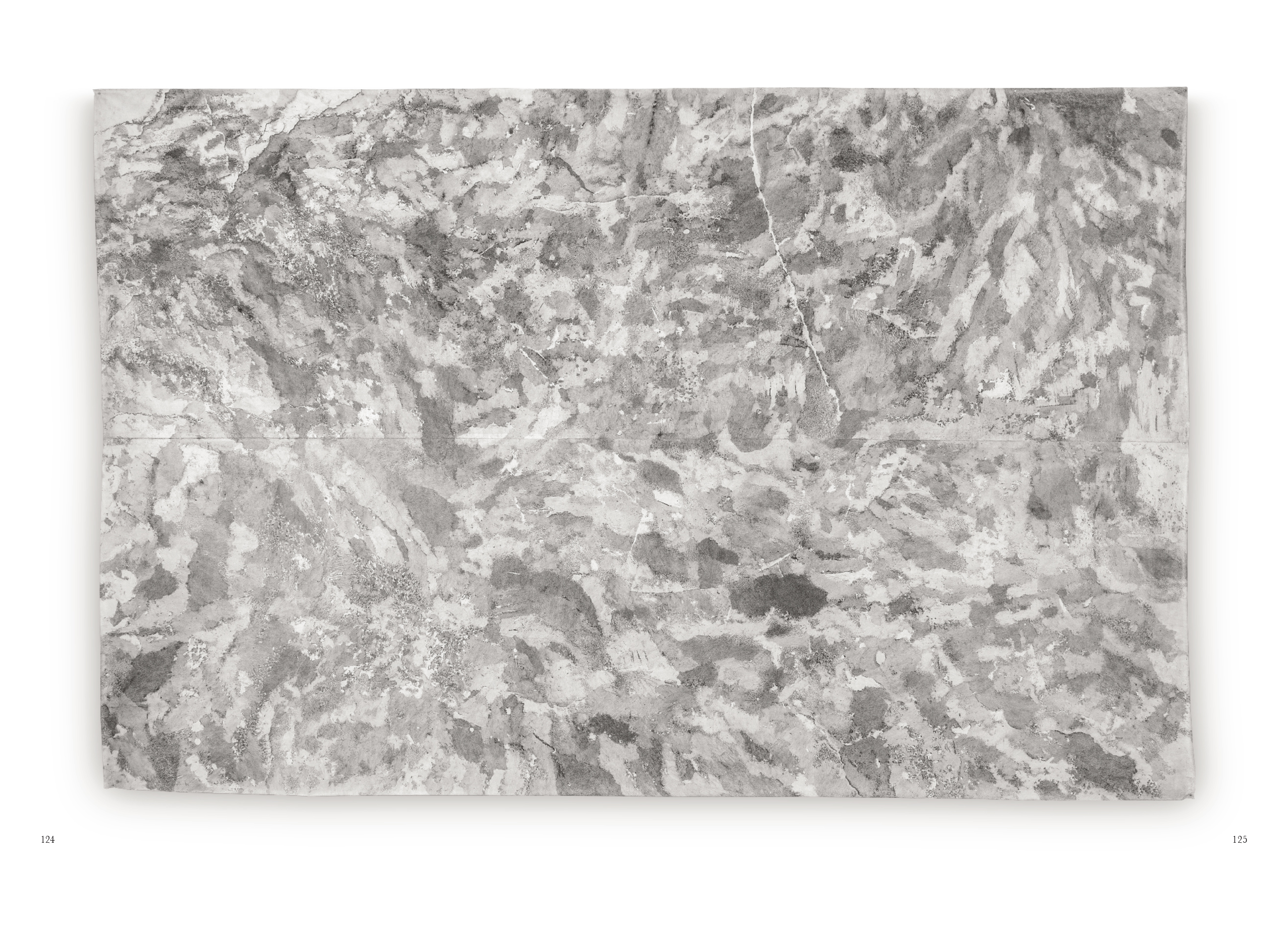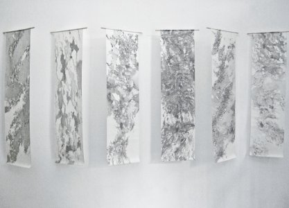 Her work is grounded in the gestural tradition of 20th-century art, drawing from Eastern artistic sources. The calligraphic tension, sustained exercises with patterns, and the disciplining of instinct in her drawings resonate with the forms of traditional Chinese drawing. Her visual pieces, charged with mental energy, resist translation into language and suggest delicate, self-contained worlds into which viewers are invited to immerse themselves. This has led her to experiment with unconventional formats, incorporating scrolls as exhibition devices and rice paper as her chosen surface. These formats, widely used in Buddhist cultures, require the viewer to engage in intimate proximity with the work—calling for a fragmented and detailed observation, and a gaze capable of following the forms as they expand, contract, or disappear.