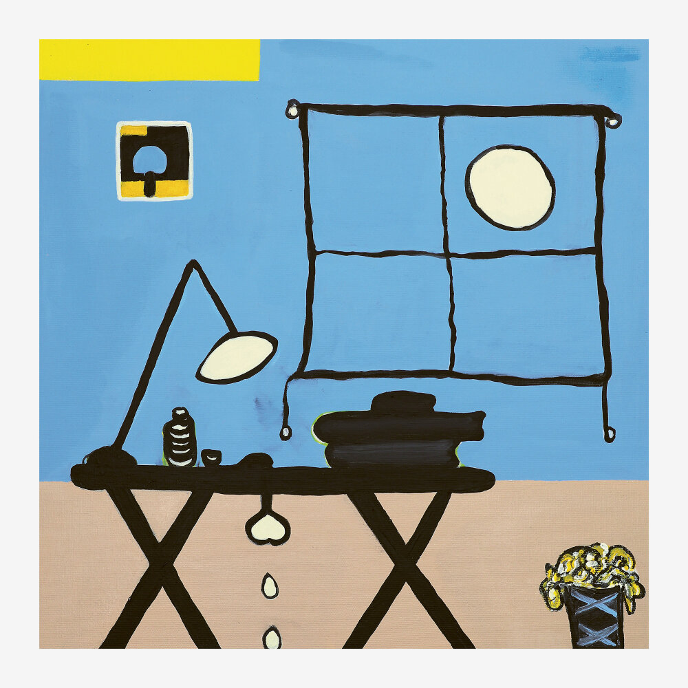 Like a syncopated movement, the project unfolds by placing its weight on what is usually left aside. What appears fragile, delayed, or understated becomes the place where the rhythm begins to breath. Each volume contains thirteen square paintings, all built from the same restrained visual syntax: a fragile white border, a horizontal band of yellow sun, a colored ground, and a central figure. This constant framework acts like a fixed measure, while slight shifts allow the emphasis to fall elsewhere. The sequence insists one beat too many – as exposure – keeping the tempo open. At first glance, the pictorial language appears elementary, almost playful, recalling the logic of simple gestures. With time and repeated return, however, this apparent ease reveals its depth, as the images begin to slow with hesitation, and accumulated attention.