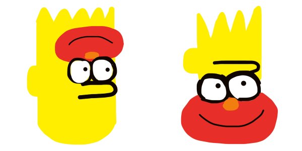 Ken Kagami creates distorted portraits by combining Bart Simpson with Sesame Street characters Elmo and Cookie Monster.
