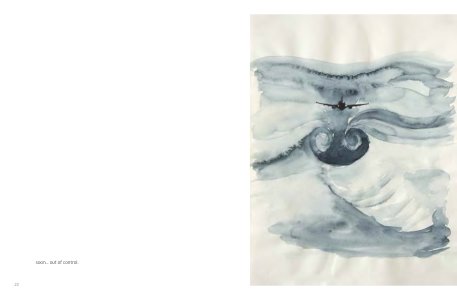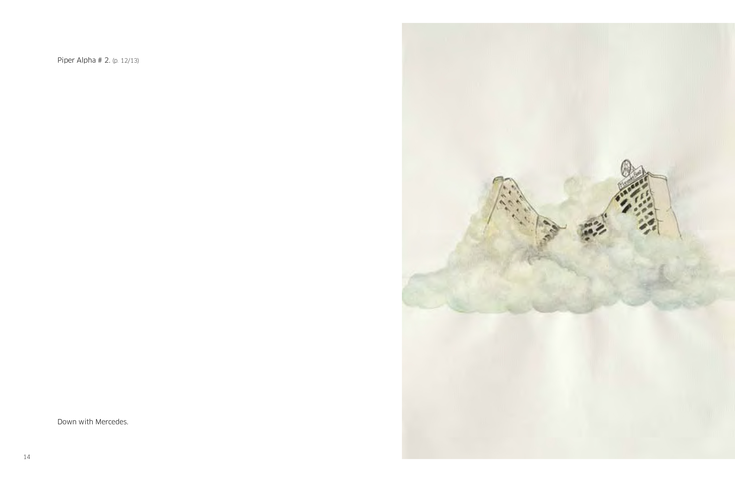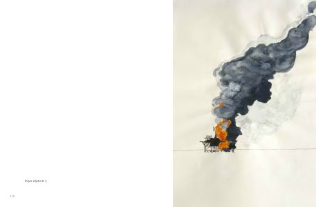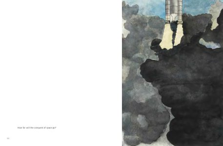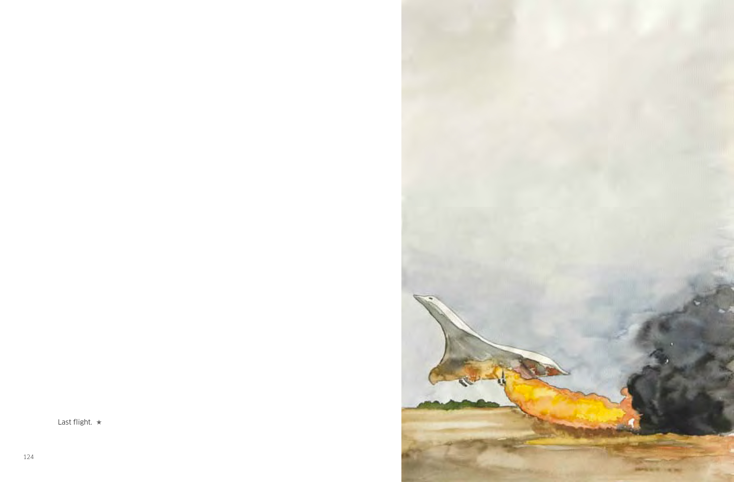 This version, also designed by Paula Galli, preserves the original aspects of the first edition as well as the "côté boutique," which contrasts beautifully with the theme. The beauty of an airplane in flames crossing the sky, the startling second of silence before the collapse of a building, the somber splendor of a voracious fire or an erupting volcano with its columns of smoke: dreadful yet riveting scenes of death and destruction—our small everyday apocalypses. Through the work of Sigismond de Vajay, we contemplate the devastation of matter, the deadly phallic drive of large missiles, the collapse of technology and its will to dominate the world. What could be a sensationalist and morbid exhibition becomes instead a subtle and moving experience. Vajay's delicate watercolors convey a healthy sarcasm that goes beyond the pessimistic campaign of fear orchestrated by the media. These new "Nouveaux Désastres" reveal the symphonic beauty of the destruction of all things, without overlooking the unavoidable environmental impact caused by humankind and its oversized toys. As Werner Herzog stated, "The collapse of the stellar universe will occur—like creation—in grandiose splendor."