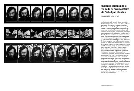 ORLAN. Under the motto "Art is life", he organised several happenings and was instrumental in the rise of this alternative movement in the Lyon region, giving a good shake-up to the local art scene and its institutions in the process. At a time when emerging new art forms from that second avant-garde were very centralised (mainly in Paris), those artists who were doing it in the regions came to be seen as real pioneers.