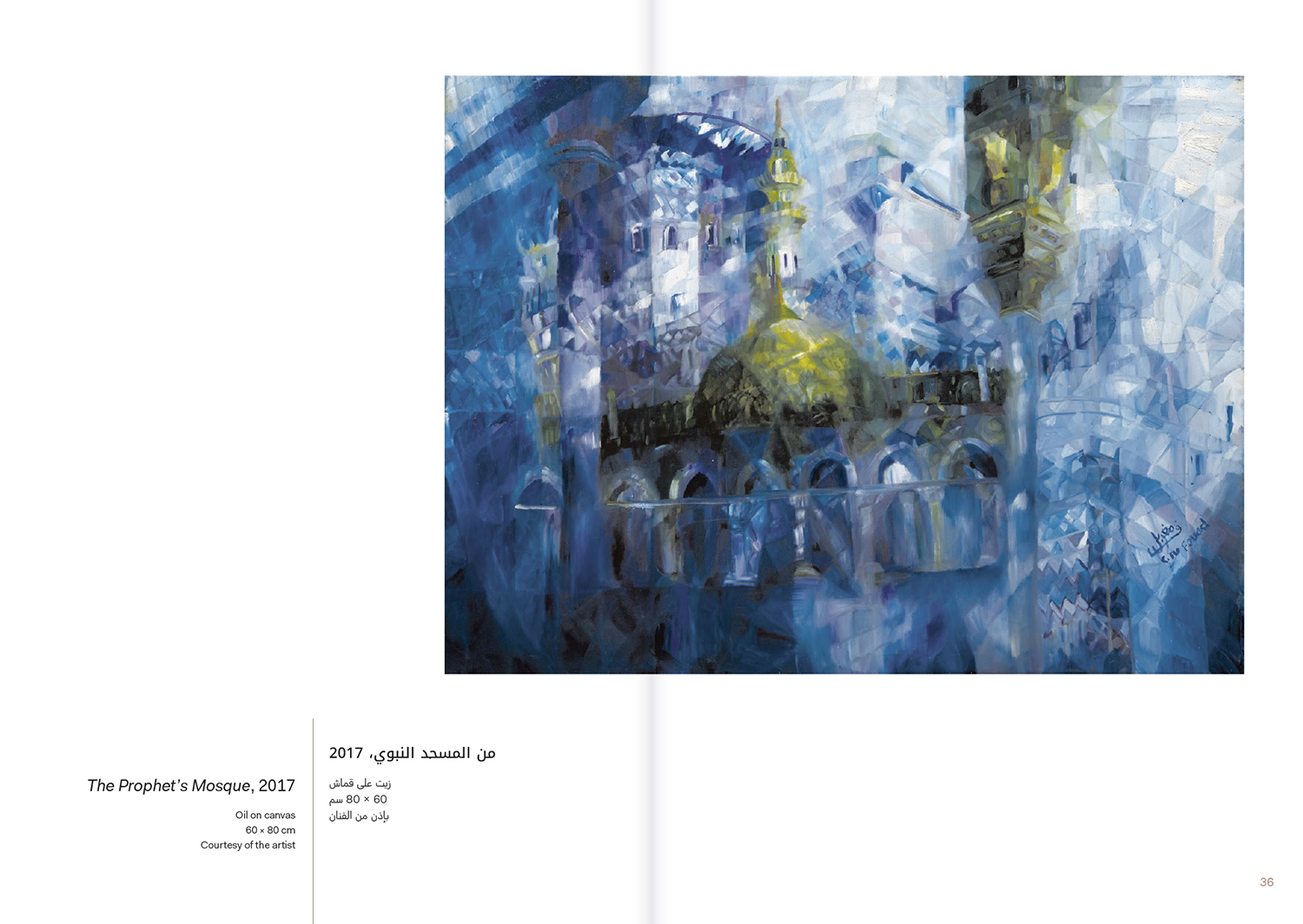 Fouad Mougharbel's artistic practice is grounded in a lifelong engagement with Madinah Almunawwarah, one of Islam's holiest cities, where he was born and raised. Working between figuration and abstraction, he develops a visual language that reinterprets the city's sacred architecture, historic urban fabric, and lived traditions. The works presented in this catalog focus on Madinah's historic neighborhoods, highlighting mosque domes, intimate passageways, and scenes of communal life drawn from memory and lived experience. Fouad Mougharbel's paintings offer an inward reflection on place, foregrounding the city's cultural and spiritual significance while inviting a deeper, more contemplative encounter.
