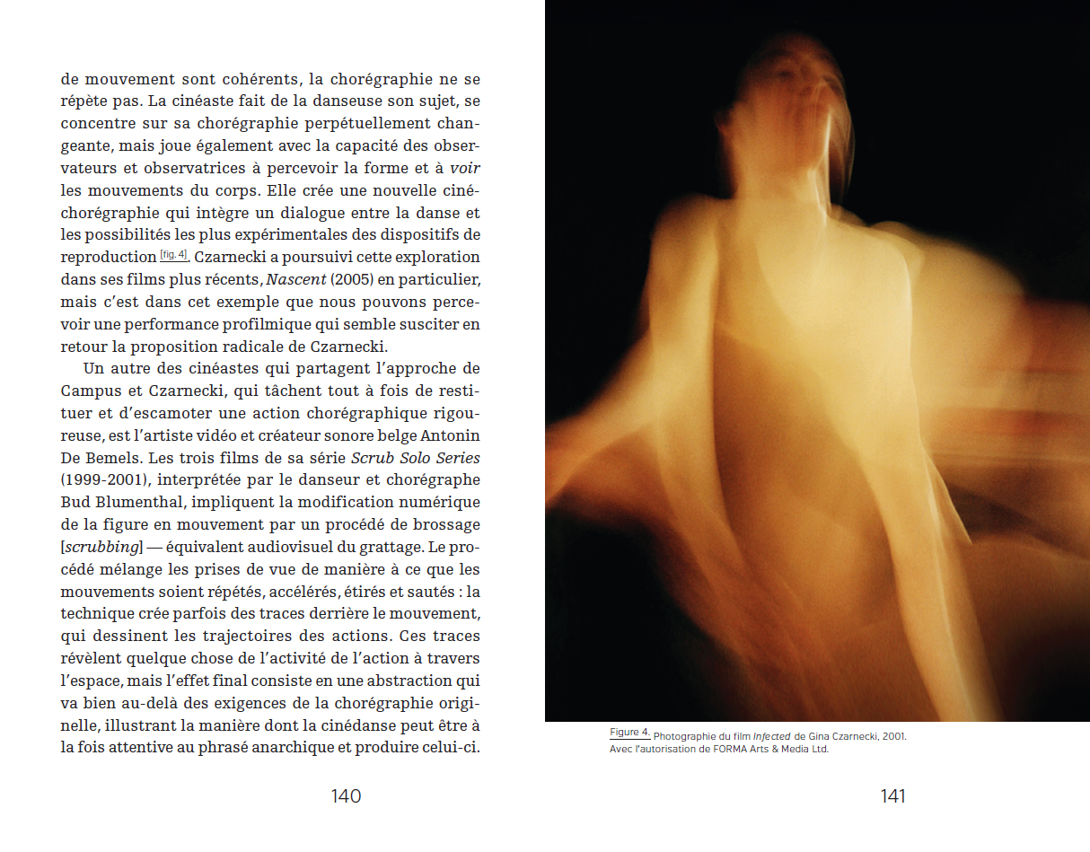 cinéma moderne et contemporain, et notamment la manière dont les éléments chorégraphiques informent les opérations cinématographiques dans le film de danse. L'histoire des avant-gardes du début du XXe siècle, des comédies musicales, des vidéoclips et des courts métrages de danse expérimentaux contemporains est ici retracée.