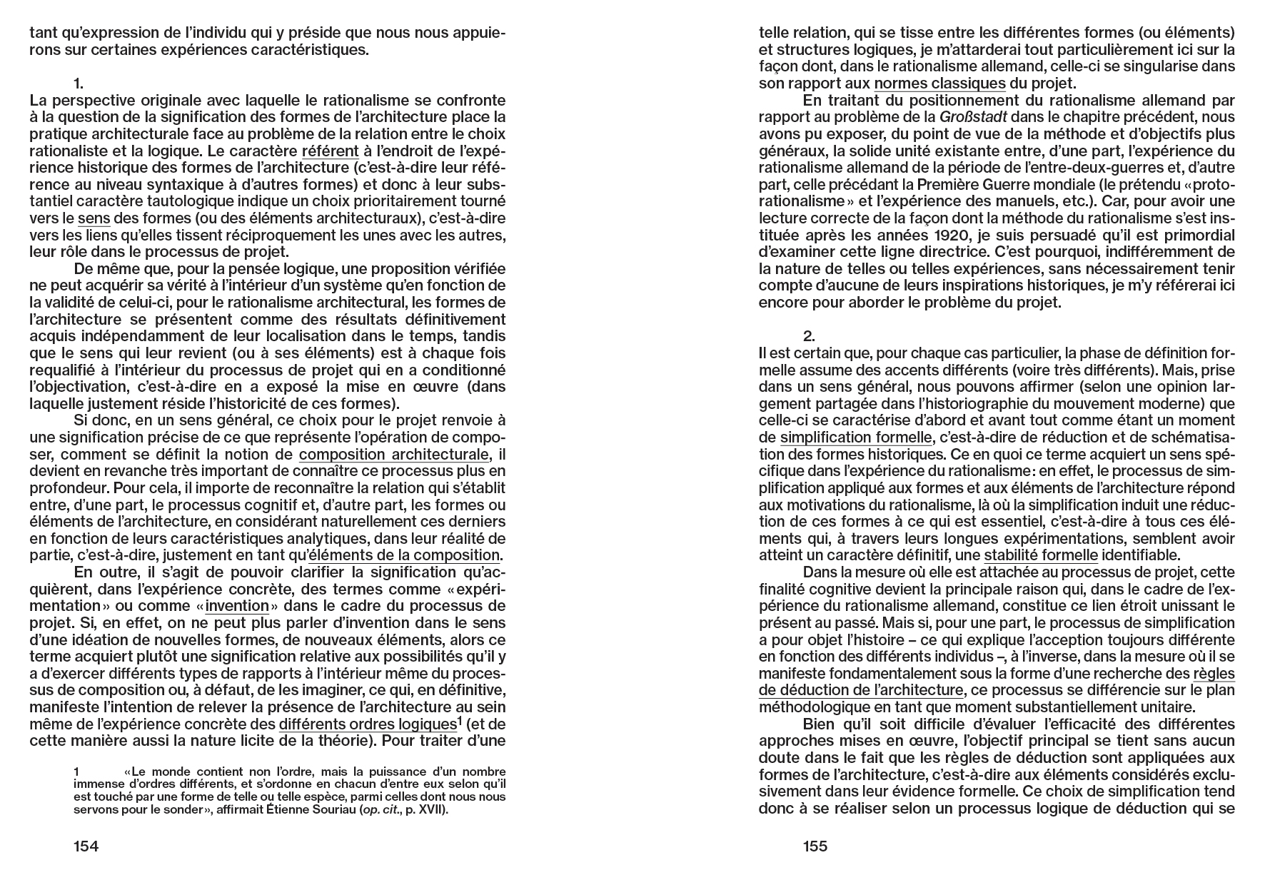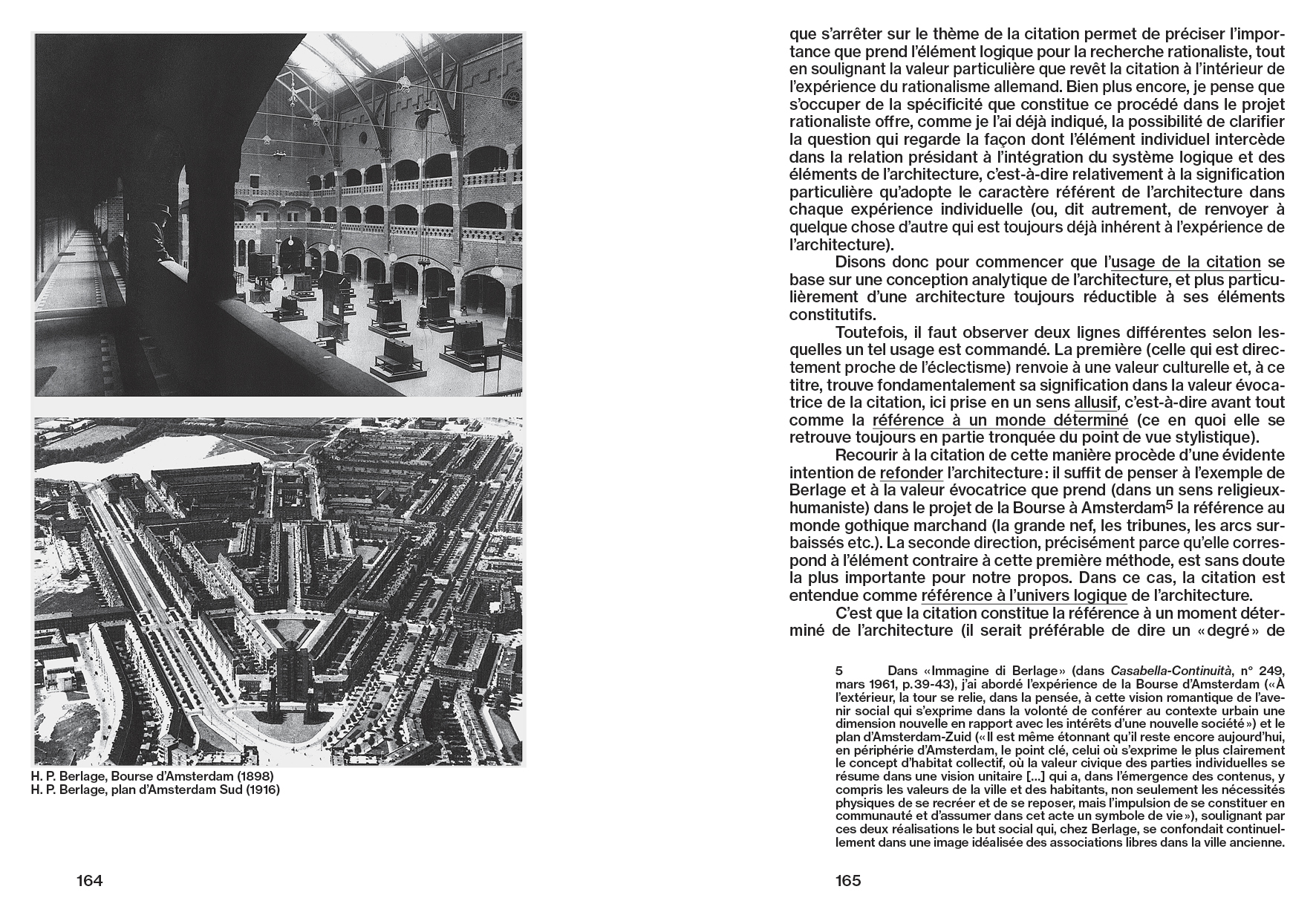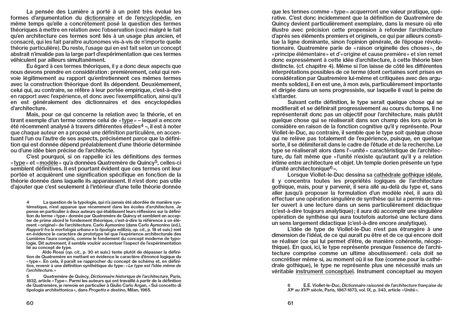 « La théorie et l'expérience de l'architecture en tant que conscience analytique de l'architecture, c'est ce que ce texte souhaite illustrer selon certains aspects particuliers et essentiels. De fait, la caractéristique analytique de l'architecture peut être vue comme un aspect relatif au problème de la connaissance; elle peut être considérée comme un moyen de connaissance, sinon comme un principe de l'architecture, aussi bien comme son principe fondamental : à ce titre, l'analytique de l'architecture est intrinsèquement l'expression de sa structure logique. Dans ce texte, je m'efforce à déterminer une ligne méthodologique pour une théorie et une expérience de l'architecture dans le temps correspondant à cette acception et à ce choix. »