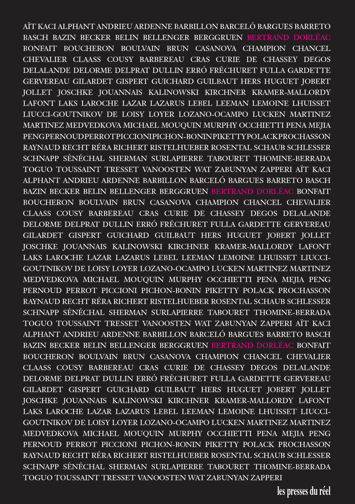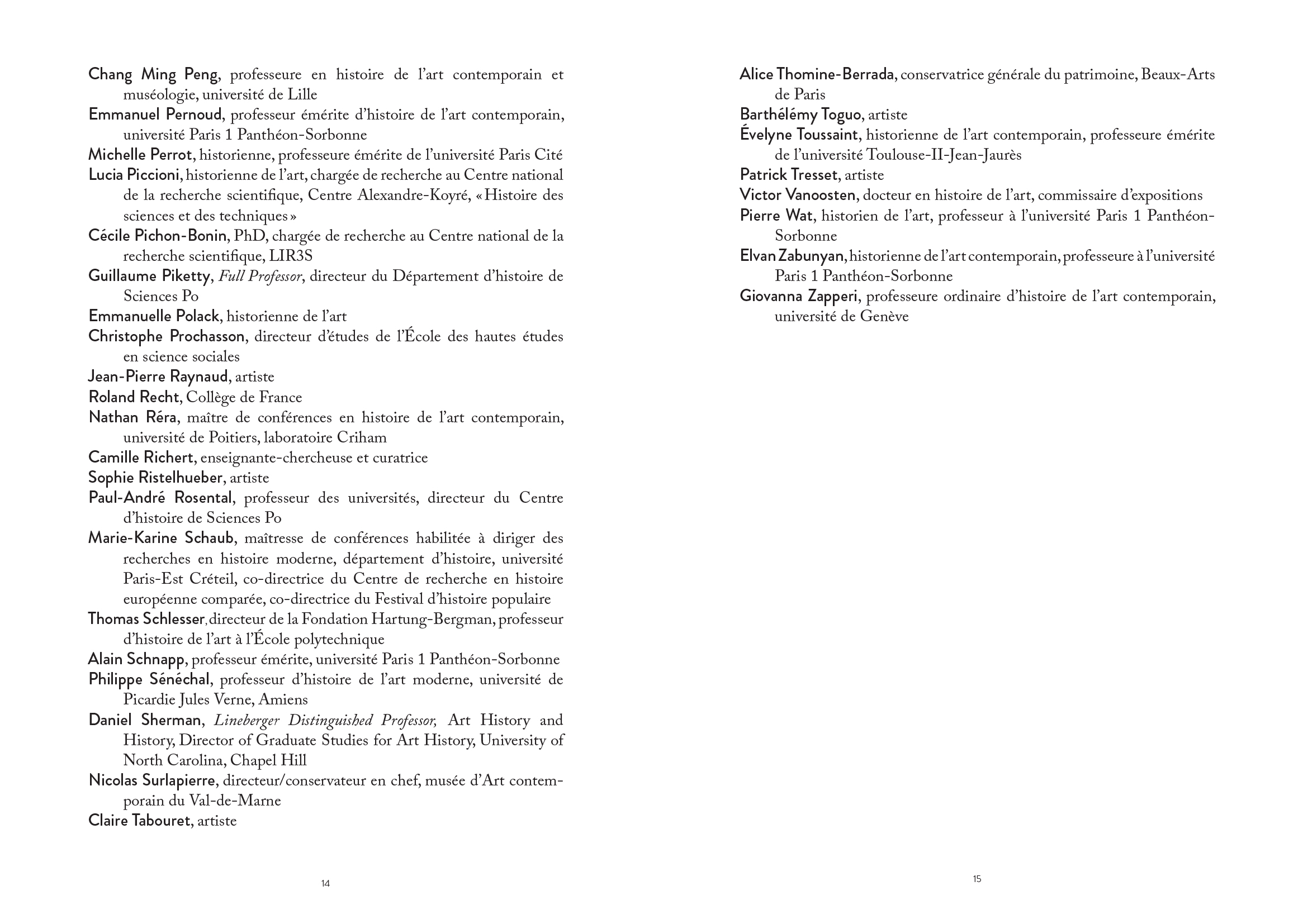 Contributions de Thomas Aït Kaci, Marianne Alphant, Claire Andrieu, Paul Ardenne, Claire Barbillon, Miquel Barceló, Cécile Bargues, Nú Barreto, Sophie Basch, Jérôme Bazin, Annette Becker, Valérie Belin, Sylvain Bellenger, Olivier Berggruen, Olivier Bonfait, Patrick Boucheron, Thibault Boulvain, Baptiste Brun, Vincent Casanova, Jean-Loup Champion, Philippe Chancel, Miguel Chevalier, Victor Claass, Maximin Cousy Barbereau, Sophie Cras, Pierre Curie, Éric de Chassey, Cécile Degos, Nicolas Delalande, Isabelle Delorme, Hélène Delprat, Sabine Dullin, Erró, Maurice Fréchuret, Mathieu Fulla, Michel Gardette, Laurent Gervereau, Brigitte Gilardet, Marie Gispert, Charlotte Guichard, Serge Guilbaut, François Hers, Vincent Huguet, Barthélémy Jobert, Étienne Jollet, Christian Joschke, Jean-Yves Jouannais, Isabelle Kalinowski, Thomas Kirchner, Antje Kramer-Mallordy, Anne Lafont, Déborah Laks, Hadrien Laroche, Marc Lazar, Jeanne Lazarus, Jean-Jacques Lebel, Richard Leeman, Colin Lemoine, Emeric Lhuisset, Nicolas Liucci-Goutnikov, Jean de Loisy, Emmanuelle Loyer, Amaru Lozano-Ocampo, Michael Lucken, Jean-Luc Martinez, Pascale Martinez, Olga Medvedkova, Androula Michael, Sophie Mouquin, Maureen Murphy, Raphaelle Occhietti, Adriana Pena Mejia, Chang Ming Peng, Emmanuel Pernoud, Michelle Perrot, Lucia Piccioni, Cécile Pichon-Bonin, Guillaume Piketty, Emmanuelle Polack, Christophe Prochasson, Jean-Pierre Raynaud, Roland Recht, Nathan Réra, Camille Richert, Sophie Ristelhueber, Paul-André Rosental, Marie-Karine Schaub, Thomas Schlesser, Alain Schnapp, Philippe Sénéchal, Daniel Sherman, Nicolas Surlapierre, Claire Tabouret, Alice Thomine-Berrada, Barthélémy Toguo, Évelyne Toussaint, Patrick Tresset, Victor Vanoosten, Pierre Wat, Elvan Zabunyan, Giovanna Zapperi.