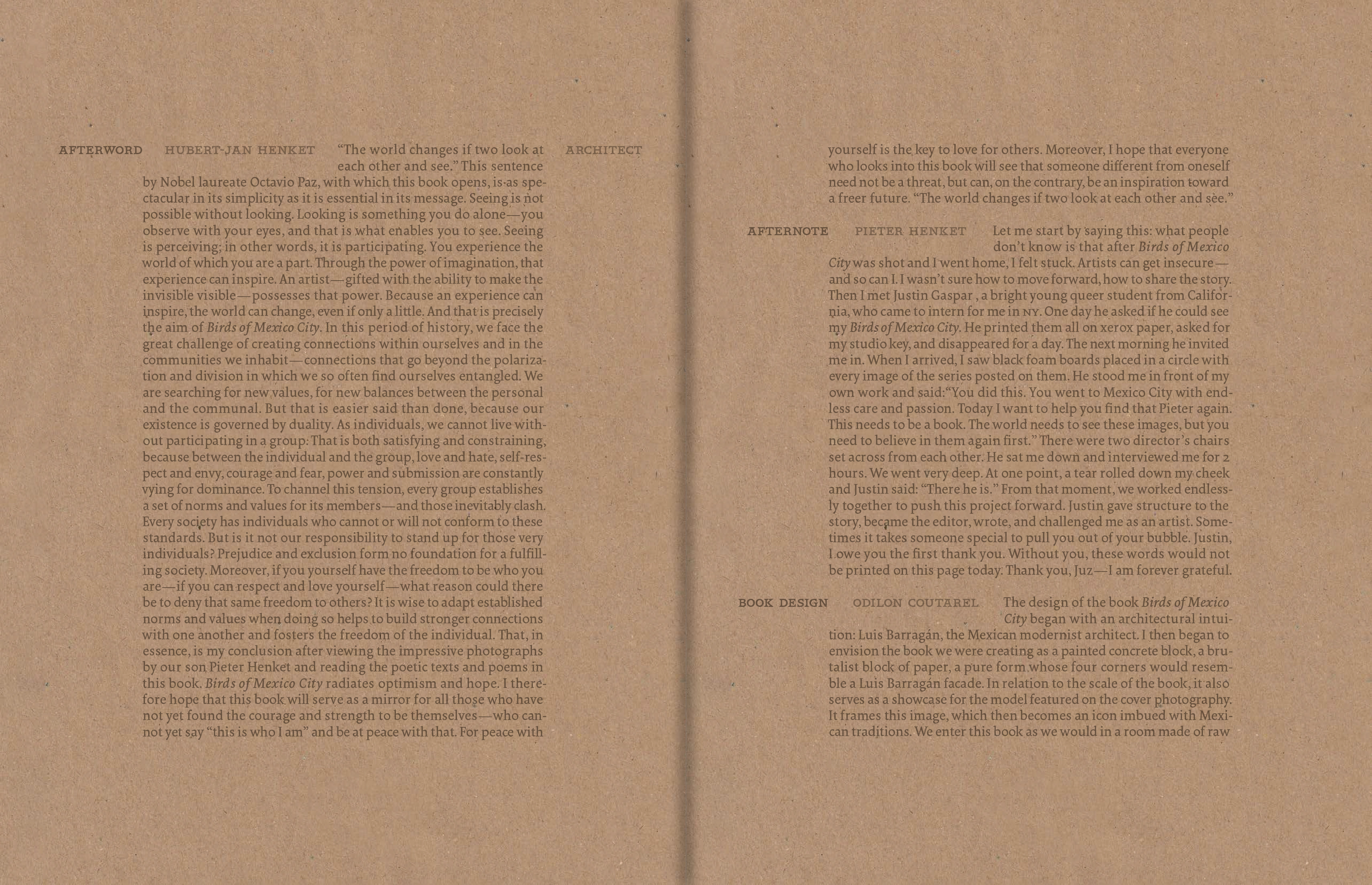 Birds of Mexico City est une collection de portraits réalisés par Pieter Henket sur plusieurs années à Mexico. La série se concentre sur une nouvelle génération de jeunes Mexicains qui redéfinissent les expressions contemporaines du genre, de l'identité, de la tradition et de la spiritualité.