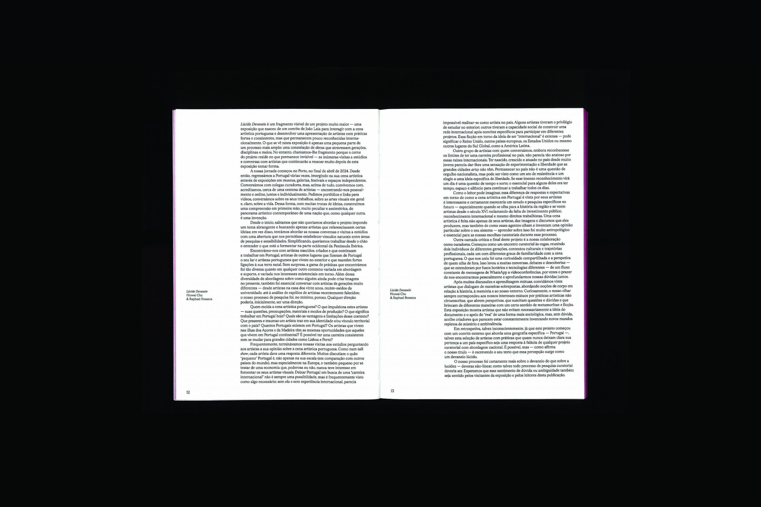 Publié à l'occasion de l'exposition éponyme à la Galerie municipale de Porto de juillet à octobre 2025, avec Ana Vidigal, André Sousa, Andreia Santana, Belén Uriel, Dayana Lucas, Francisco Trêpa, Gonçalo Sena, Ilídio Candja, Joana Escoval, João Gabriel, João Pedro Vale + Nuno Alexandre Ferreira, Mané Pacheco, Mariana Caló & Francisco Queimadela, Sara Bichão, Sara Chang Yan, Silvestre Pestana, Sofia Borges, Teresa Murta, Tiago Madaleno, Tiago Mestre.