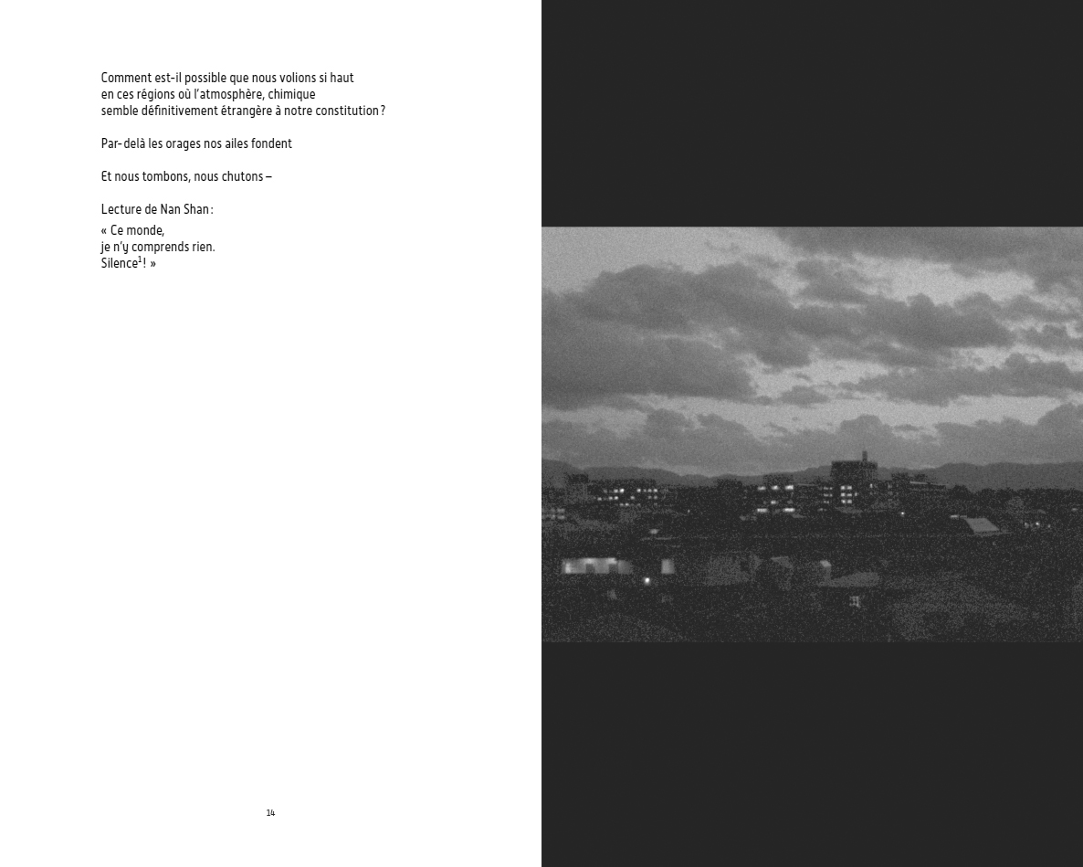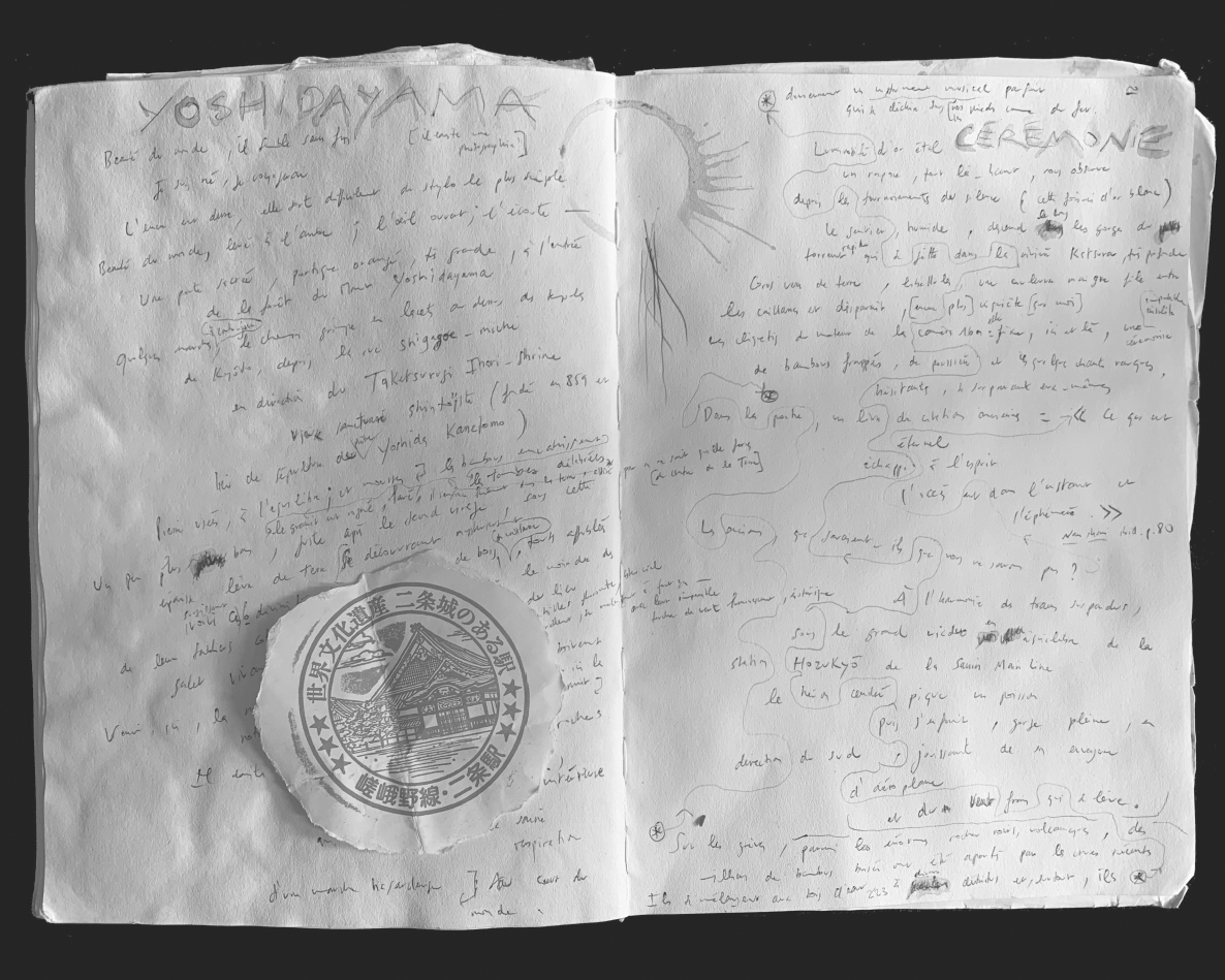 Kyōto, ancienne capitale du Japon. Ses collines, ses temples, ses forêts, les rivières claires venues des hauteurs. Mais aussi les quartiers populaires, les ruelles étroites, les temples discrets, les esprits cachés. Autant d'occasions, pour le poète – à l'affût – de se laisser surprendre. Pérégriner. Sur le motif : une scène incongrue, le regard d'une divinité animale, ce chantier strident, une cérémonie chantée pour un film (Un Chant Aveugle, avec le Chœur tac-til). Beauté rugueuse d'un arbre centenaire, des pierres d'un sanctuaire ancien. Sans oublier la pratique, le jeu, la tenue, la fatigue des sens, mais aussi l'alcool de riz – et les illusions nécessaires, parfois lumineuses : « Si tu es disponible à ce que parfois l'on nomme la disponibilité / la disponibilité se rend d'elle-même disponible / à la disponibilité. » Jusqu'à l'océan, qui rend sur la grève ses débris salés, pendant que le marcheur, carnet en poche, écoute danser les mots.