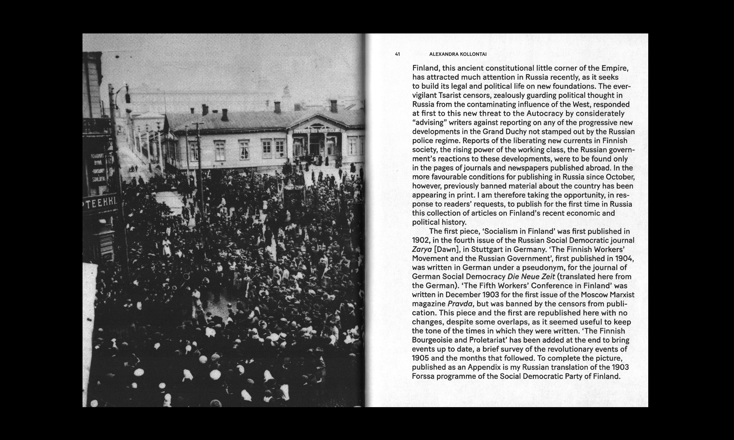 In her lengthy introduction, Porter contextualises Kollontaï's writings on Finland by discussing her style and her translation of Marxist terminology into the political struggle. She also provides valuable details about the background to the initial publication of the Finland and Socialism booklet.