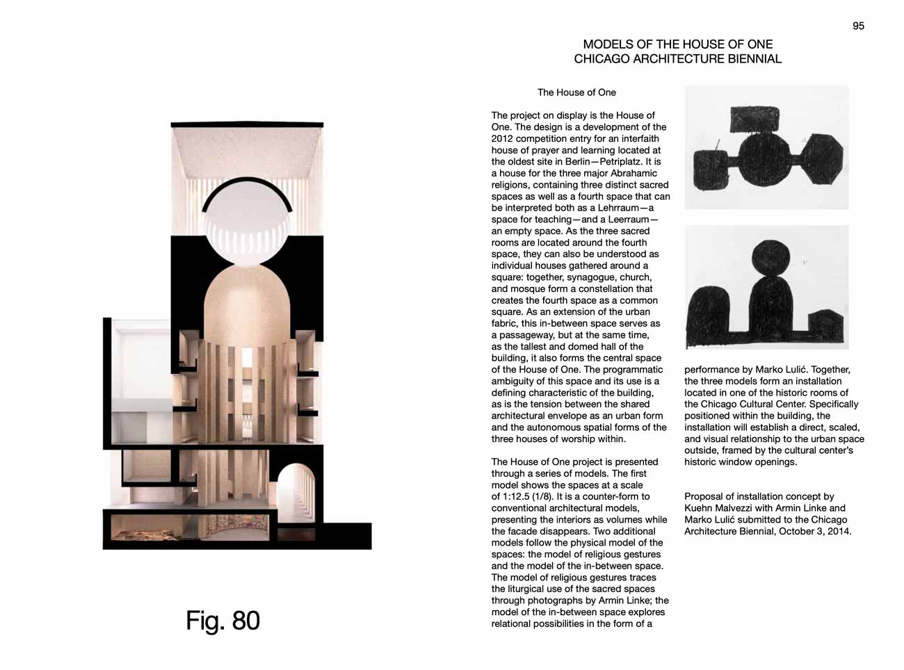 La relation dynamique entre le singulier et l'universel inspire son architecture en tant que monument hybride. Depuis 2012, le projet suscite un intérêt considérable en raison de son caractère unique et de sa complexité. Il a été présenté dans de nombreuses expositions internationales, notamment à la Biennale de Chicago et à la Biennale de Venise. Une maquette en bois de la Maison de l'Unité fait partie de la collection du Victoria and Albert Museum. Cet ouvrage retrace l'évolution du projet jusqu'à aujourd'hui et comprend des détails sur les expositions, des articles et des contributions d'artistes qui ont interprété la House of One à travers des vidéos, des photographies et des performances.