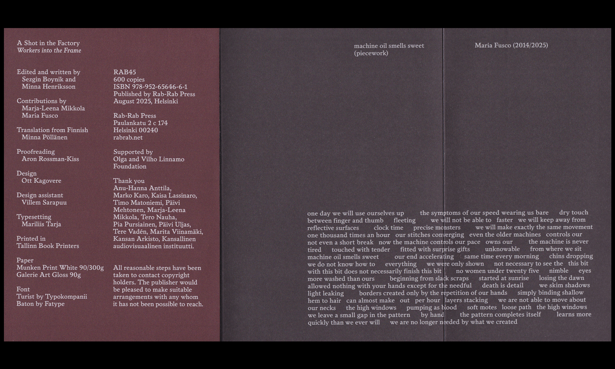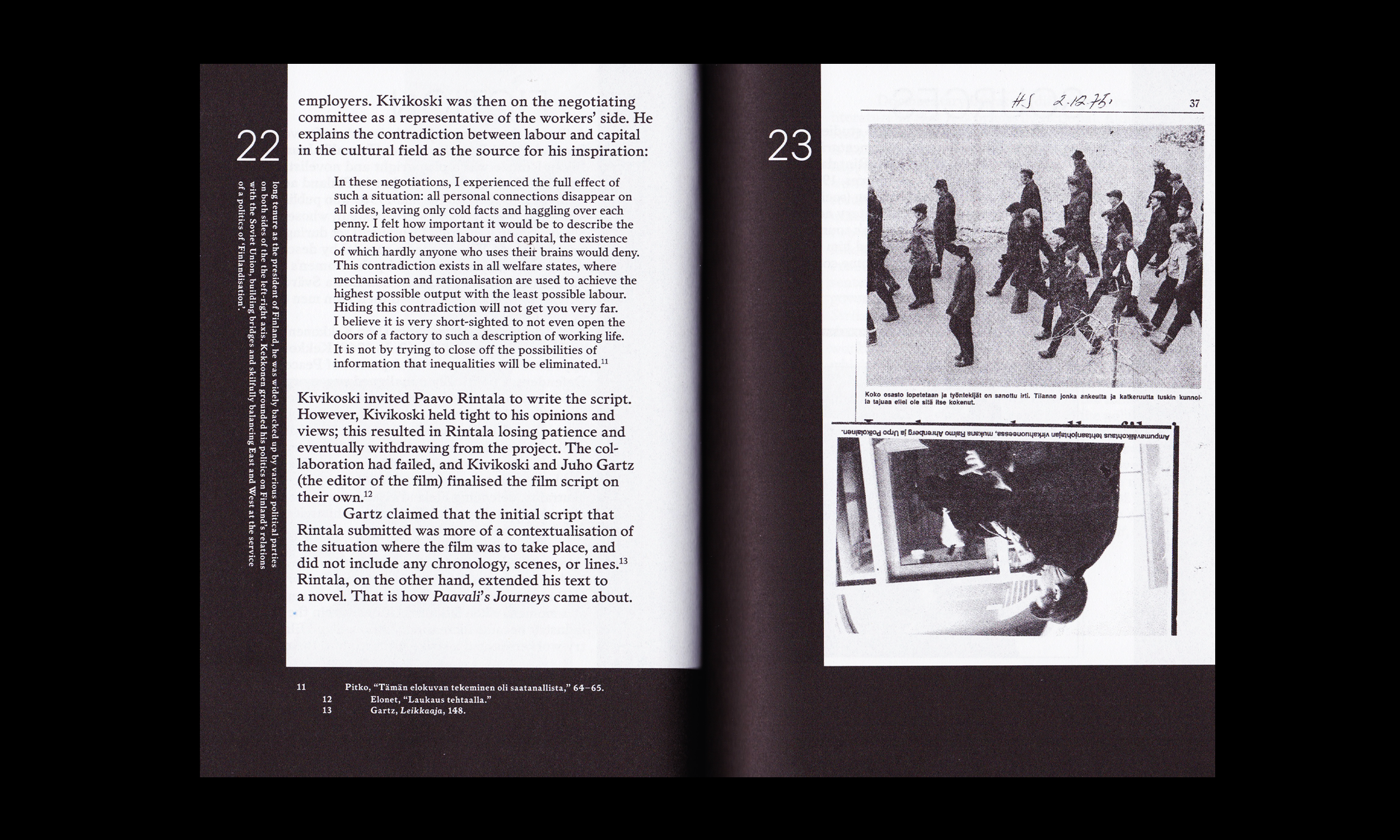 Designed by Ott Kagovere, the book features a comprehensive selection of images from the film, as well as factual workers' struggles in Finland.