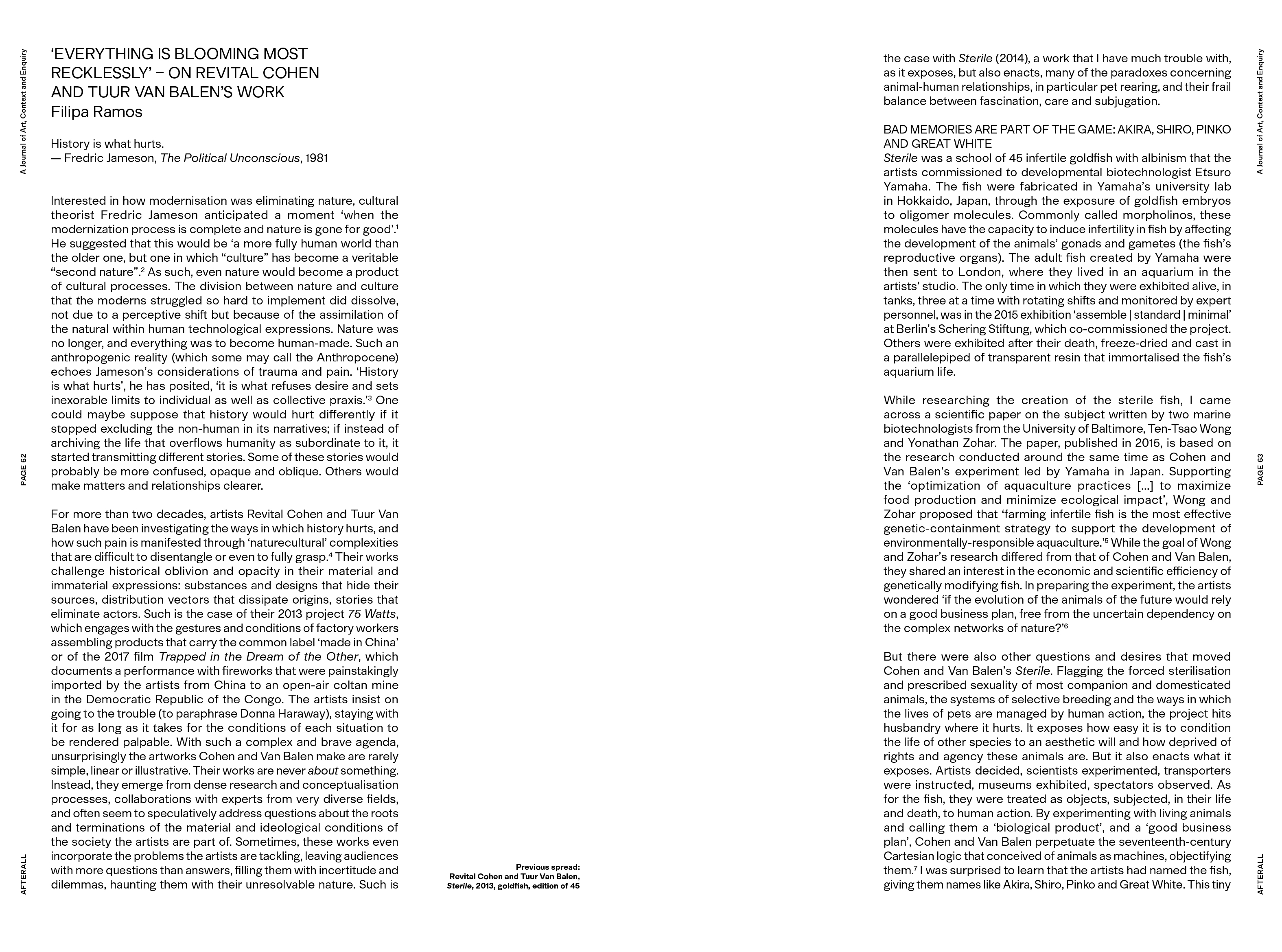 Editée par Elisa Adami, Amanda Carneiro, Nav Haq, Mark Lewis, Adeena Mey, Charles Stankievech et Chloe Ting, la revue est publiée par Central Saint Martins en association avec University of Chicago Press et en partenariat de recherche et d'édition avec le M HKA (Anvers), la Faculté d'architecture, de paysage et de design John H. Daniels (Université de Toronto) et le NTU Centre for Contemporary Art (Singapour).