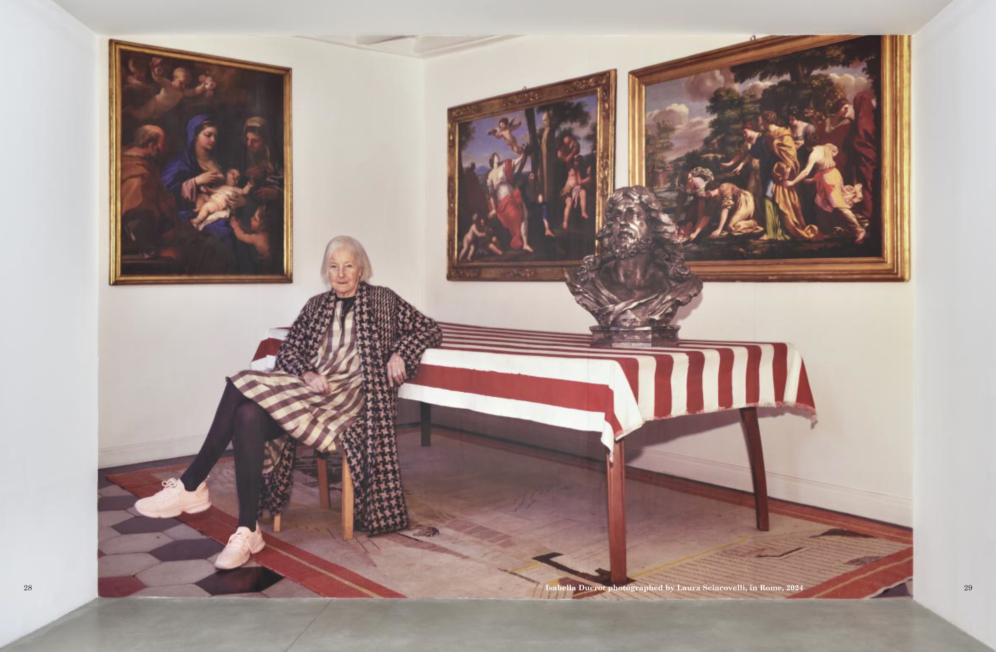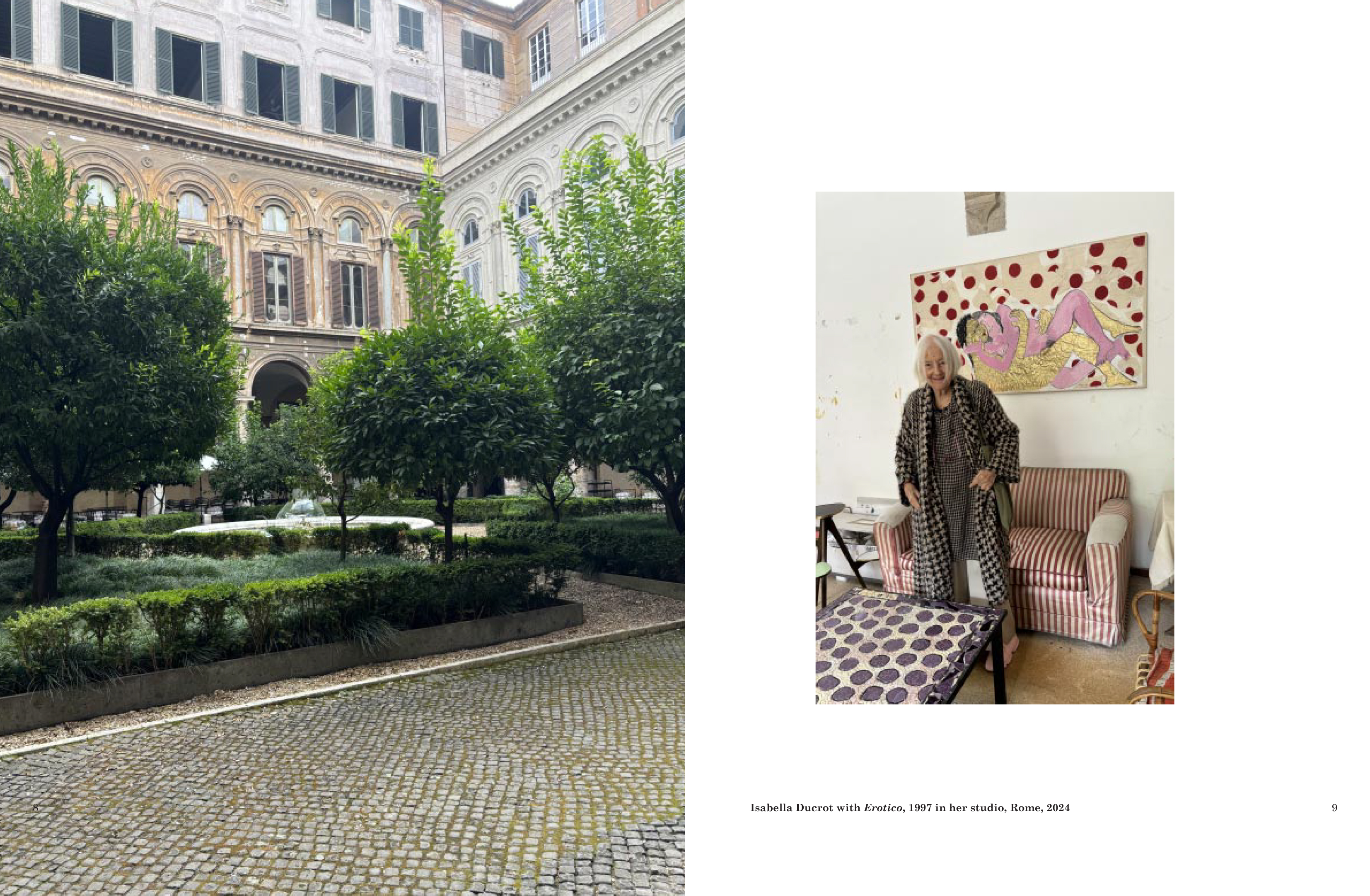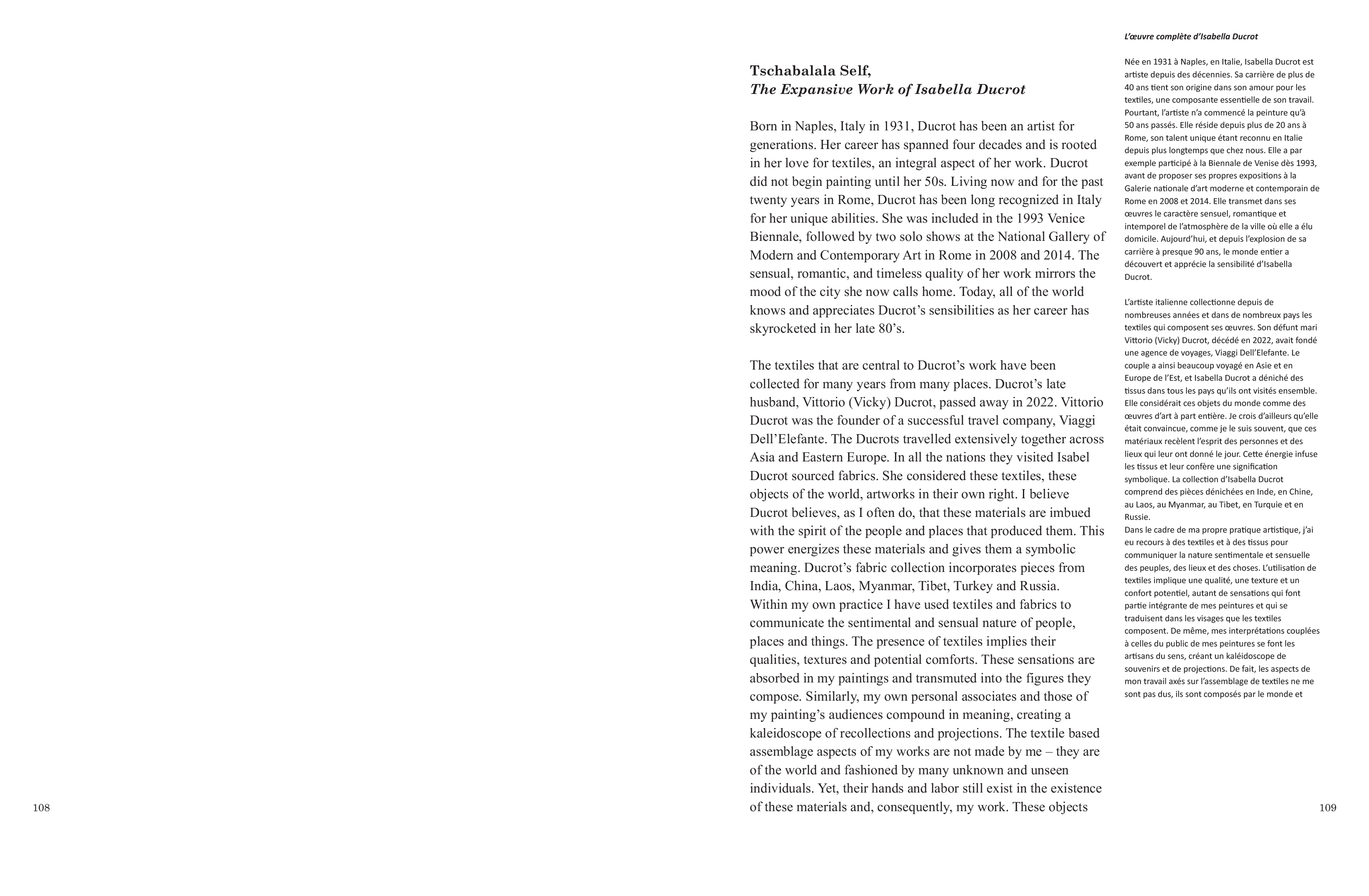 Artemisia Gentileschi et Luca Giordano, de dizaines de délicieuses miniatures persanes et indiennes, de morceaux de tapis du XVIIe siècle, et d'autres tissus antiques qu'Isabella Ducrot a passé sa vie et y a forgé la volonté réelle et exigeante de construire sa propre œuvre. Elle a relevé le défi en transcrivant histoires et citations sur du papier, des tissus et des collages.