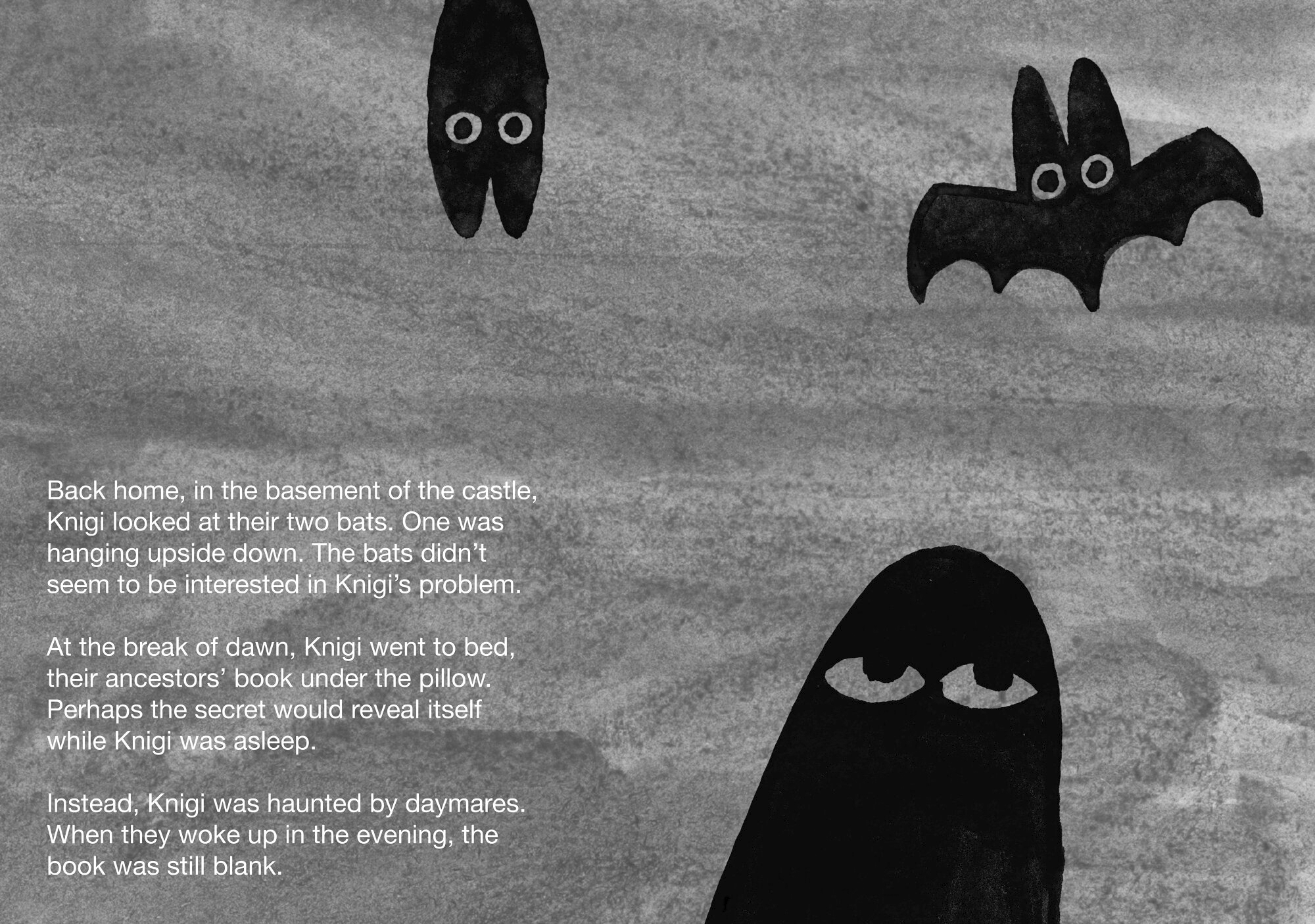 Pourtant, quelque chose ne va pas, Knigi s'inquiète : le livre est totalement vierge, toutes les pages sont blanches, du début à la fin. Knigi doit alors embarquer pour un voyage à la découverte de la lecture...
