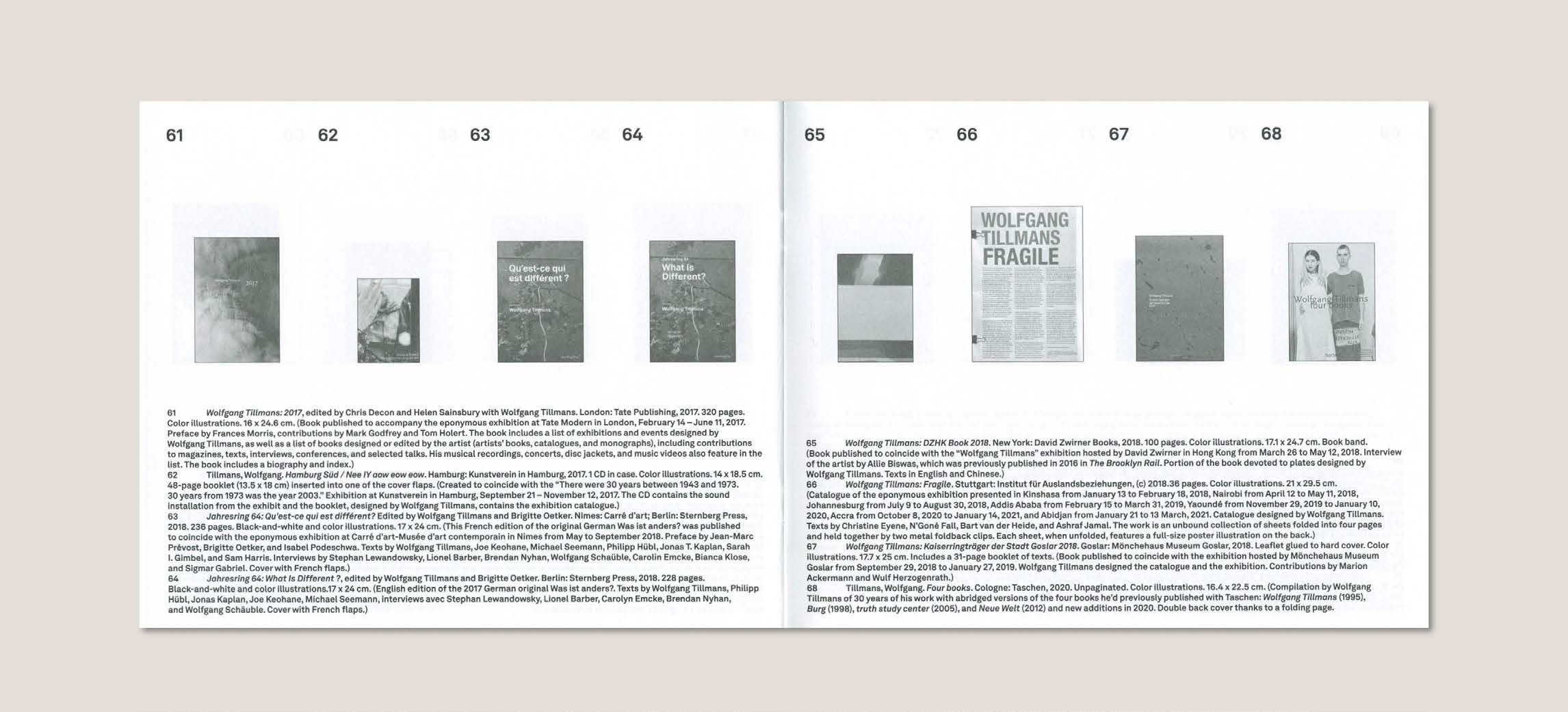 Premier photographe et artiste non britannique à recevoir le Turner Prize de la Tate Modern, Wolfgang Tilmmans a exposé dans les plus grandes institutions internationales : Stedelijk Museum, Amsterdam (2008) ; Hamburger Bahnhof, Berlin (2008) ; Kunsthalle, Zurich (2009) ; Moderna Museet, Stockholm (2009) ; Philadelphia Museum of Art (2014) ; Centre Pompidou, Metz (2014) ; National Museum of Modern Art, Osaka (2015) ; Metropolitan Museum of Art, New York (2015) ; Fundaçao de