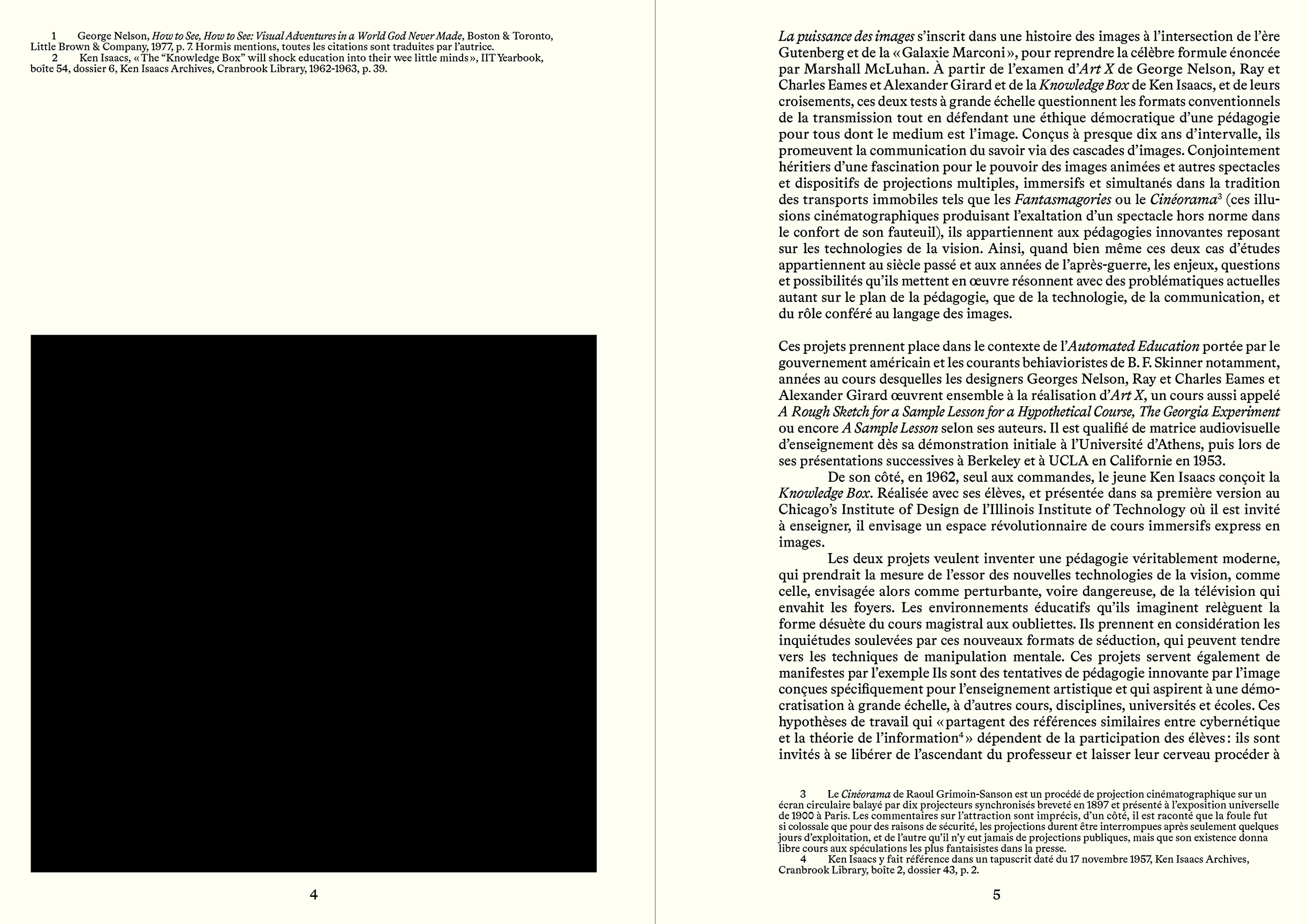 Un essai d'Alexandra Midal sur les expériences visuelles d'apprentissage par les images à partir de deux projets révolutionnaires de designers majeurs du XXe siècle : Charles et Ray Eames, Georges Nelson et Alexander Girard, et