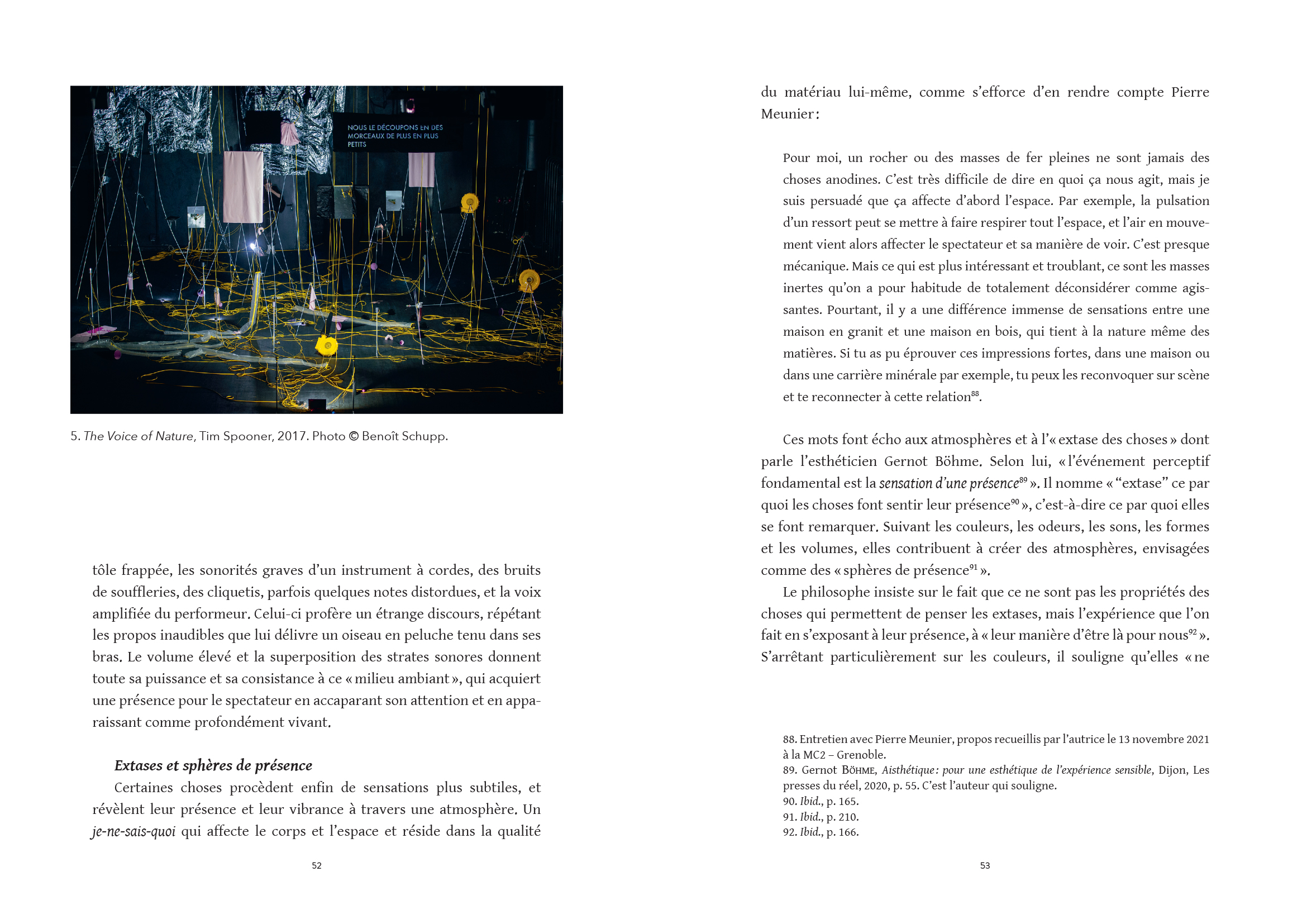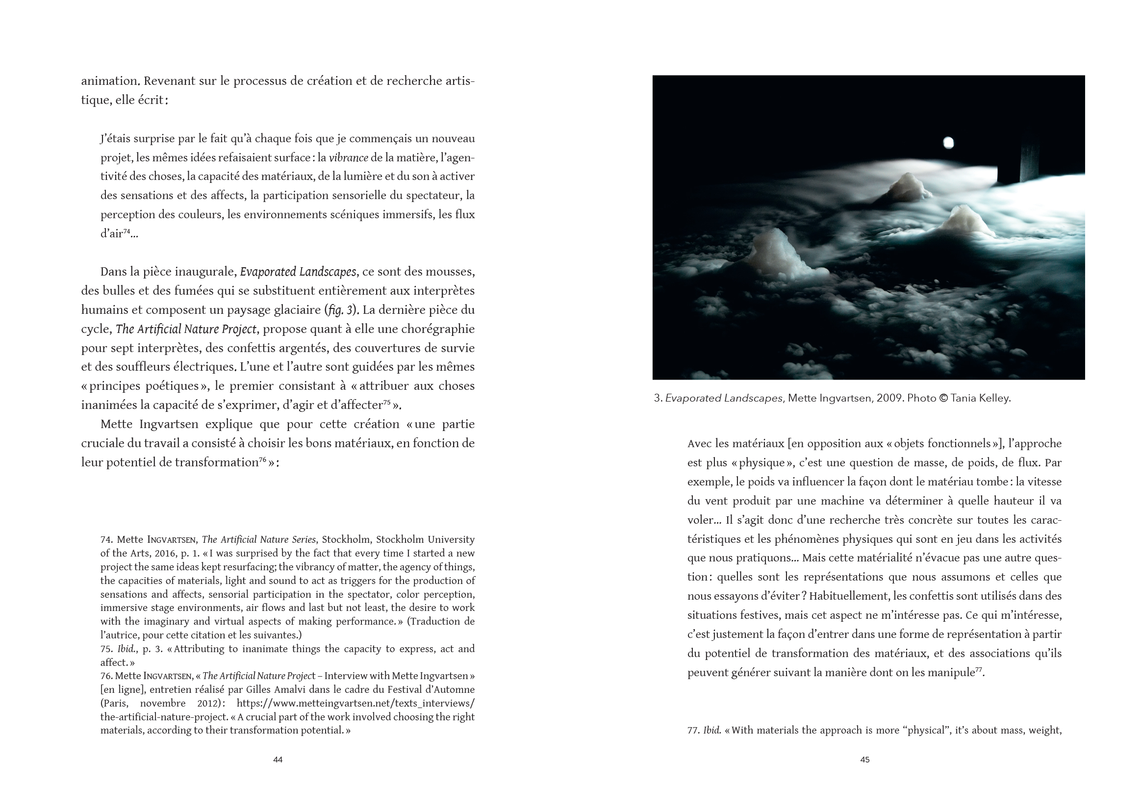 Emma Merabet interroge les formes scéniques désanthropocentrées, où l'humain n'est plus au centre des attentions, et où les éléments non-humains (matières, objets, animaux, machines, phénomènes naturels…) deviennent des présences et des agents à part entière, dévoilant la portée écologique de ces propositions.