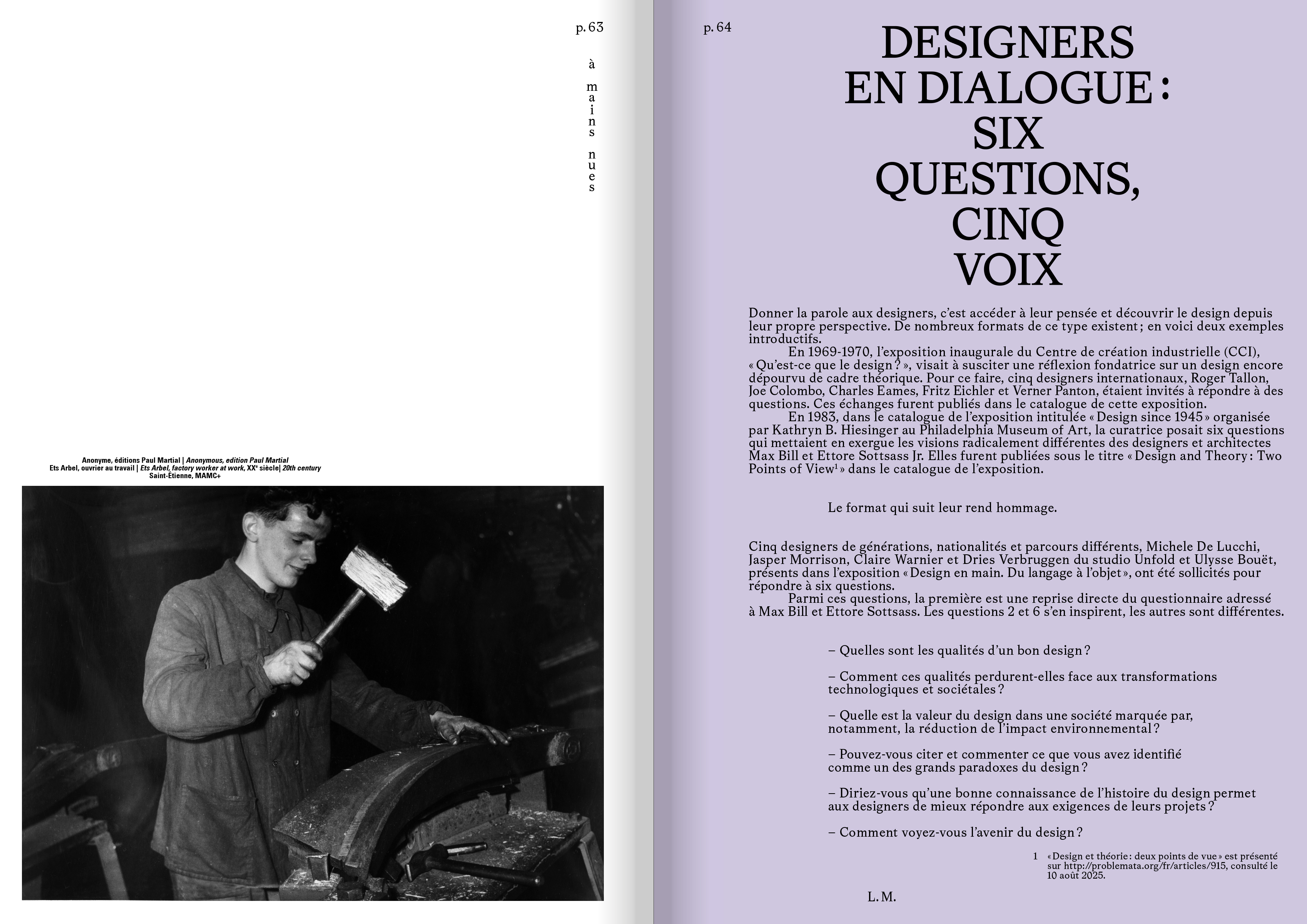 Augmenté par des essais d'autrices et auteurs internationaux, séquencé par des propos de designers, des notices et une riche iconographie, cet ouvrage, ainsi que les matériaux qui le constituent, pourra être tenu en main, avant de passer de main en main.