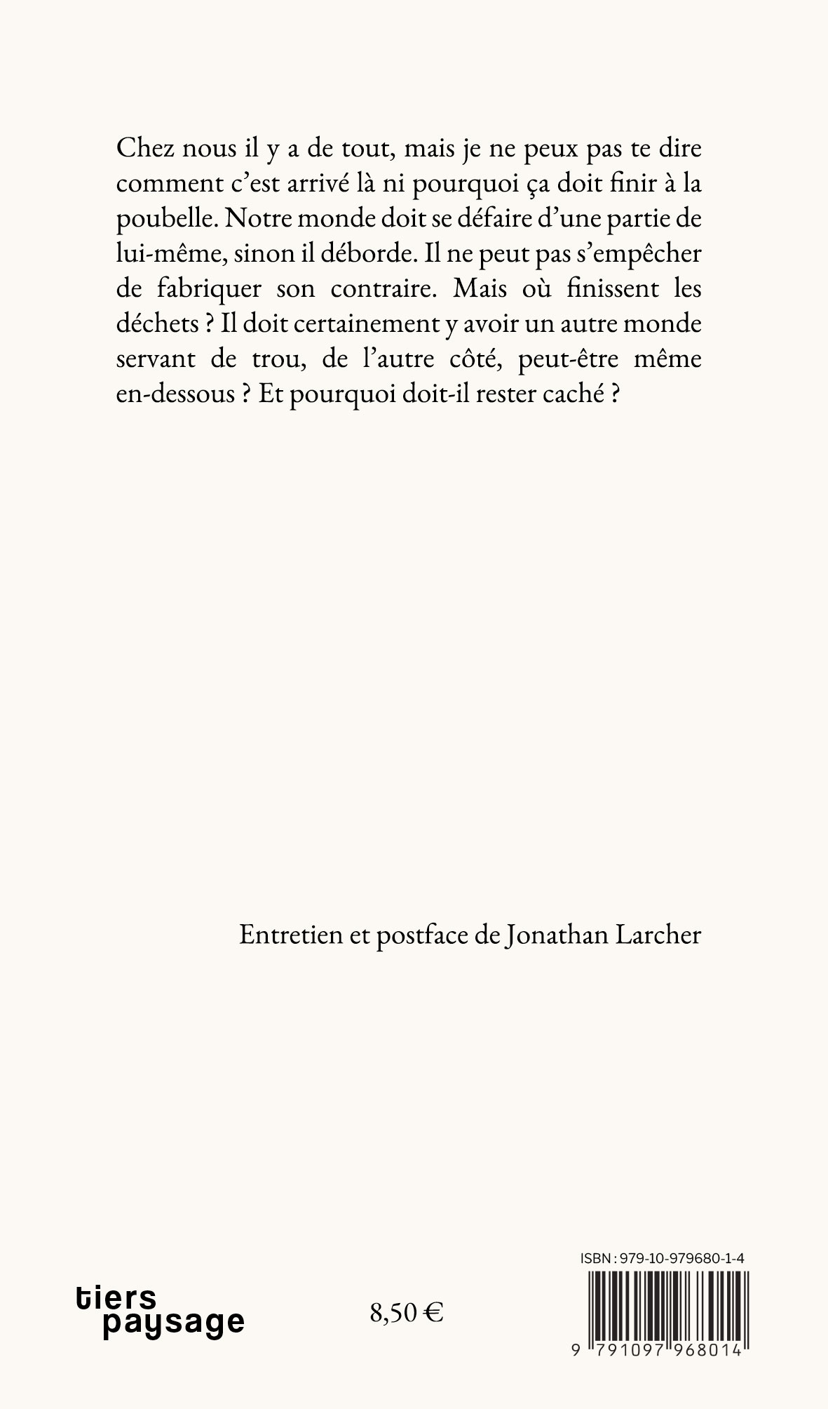 Mais où finissent les déchets ? Il doit certainement y avoir un autre monde servant de trou, de l'autre côté, peut-être même en-dessous ? Et pourquoi doit-il rester caché ?