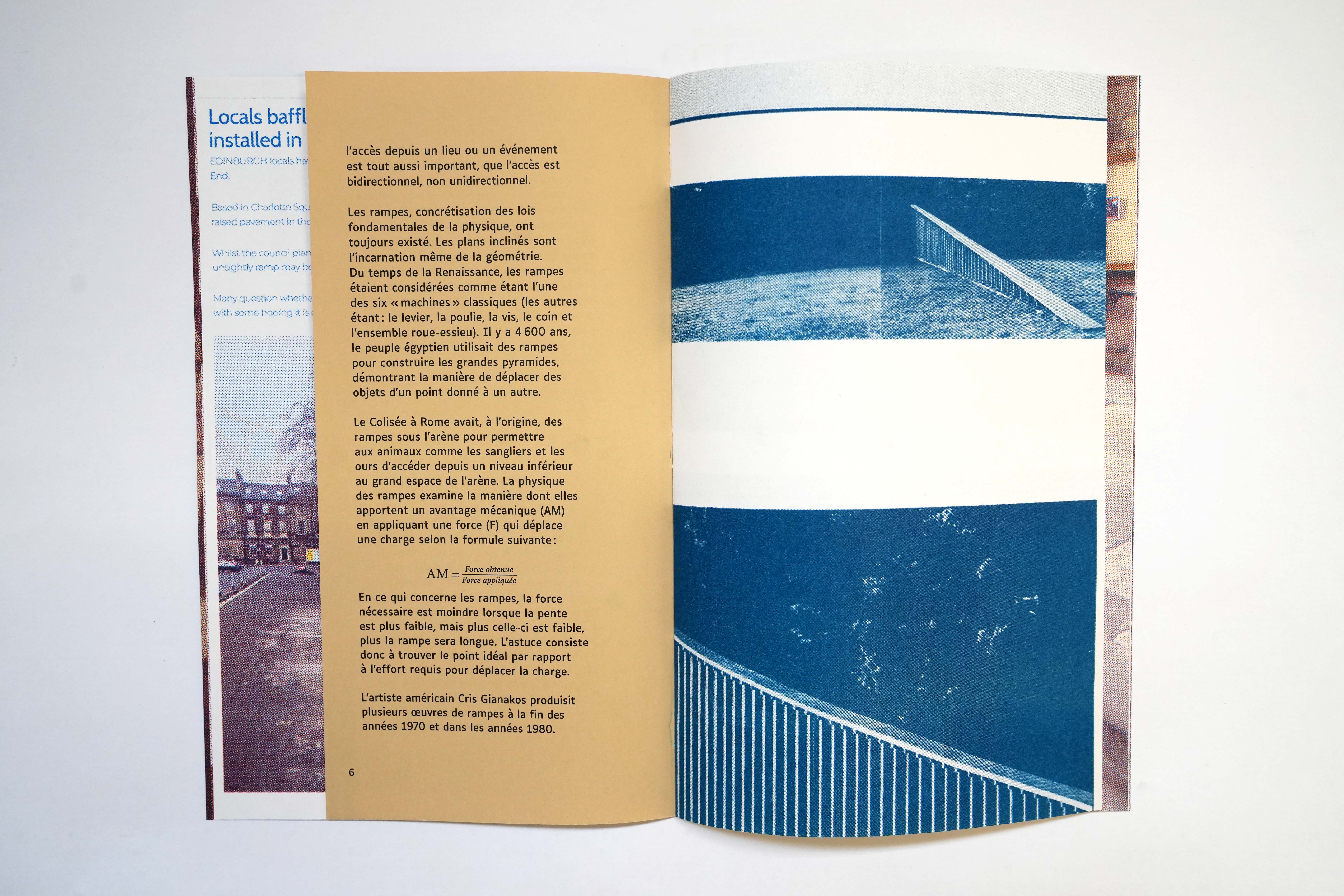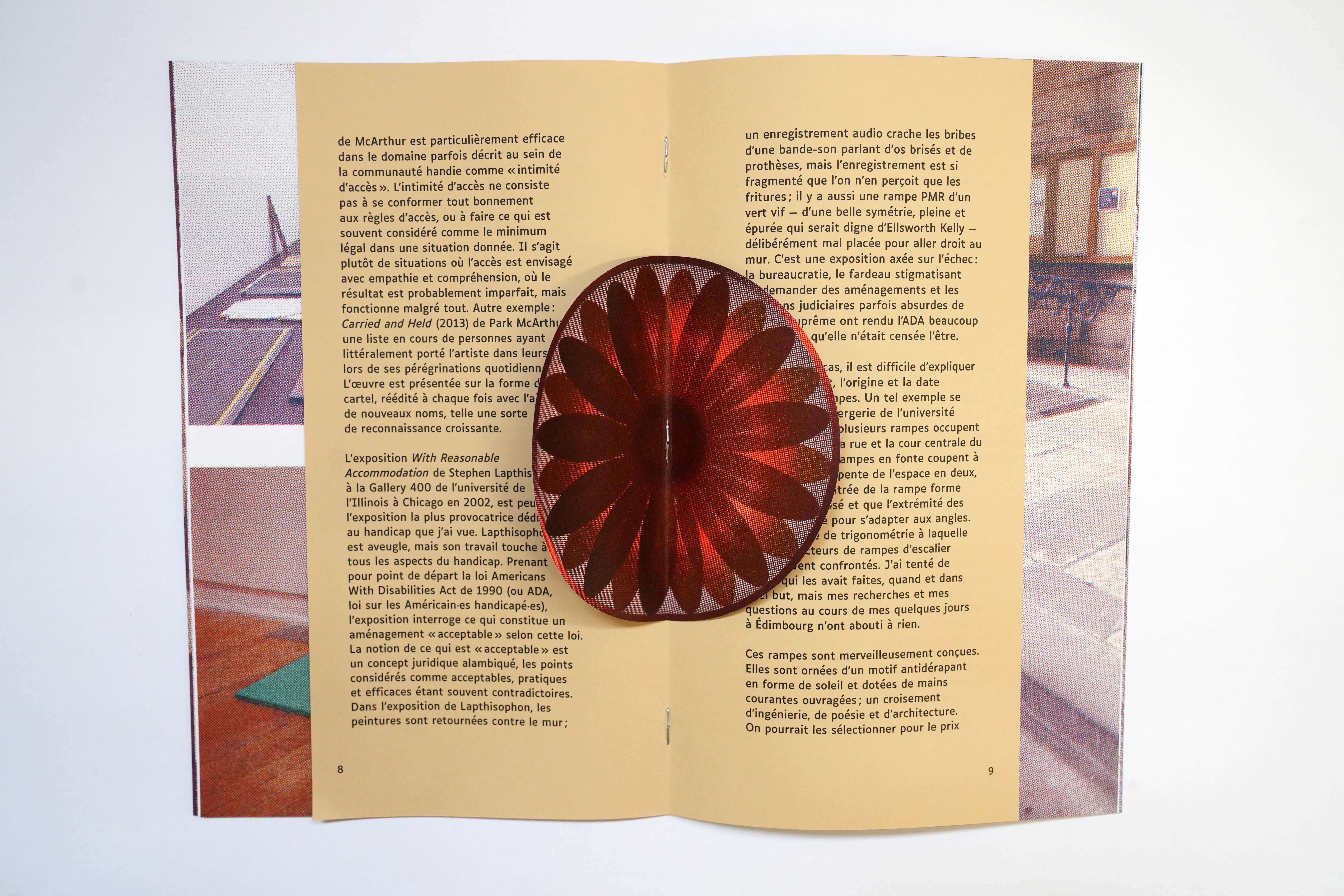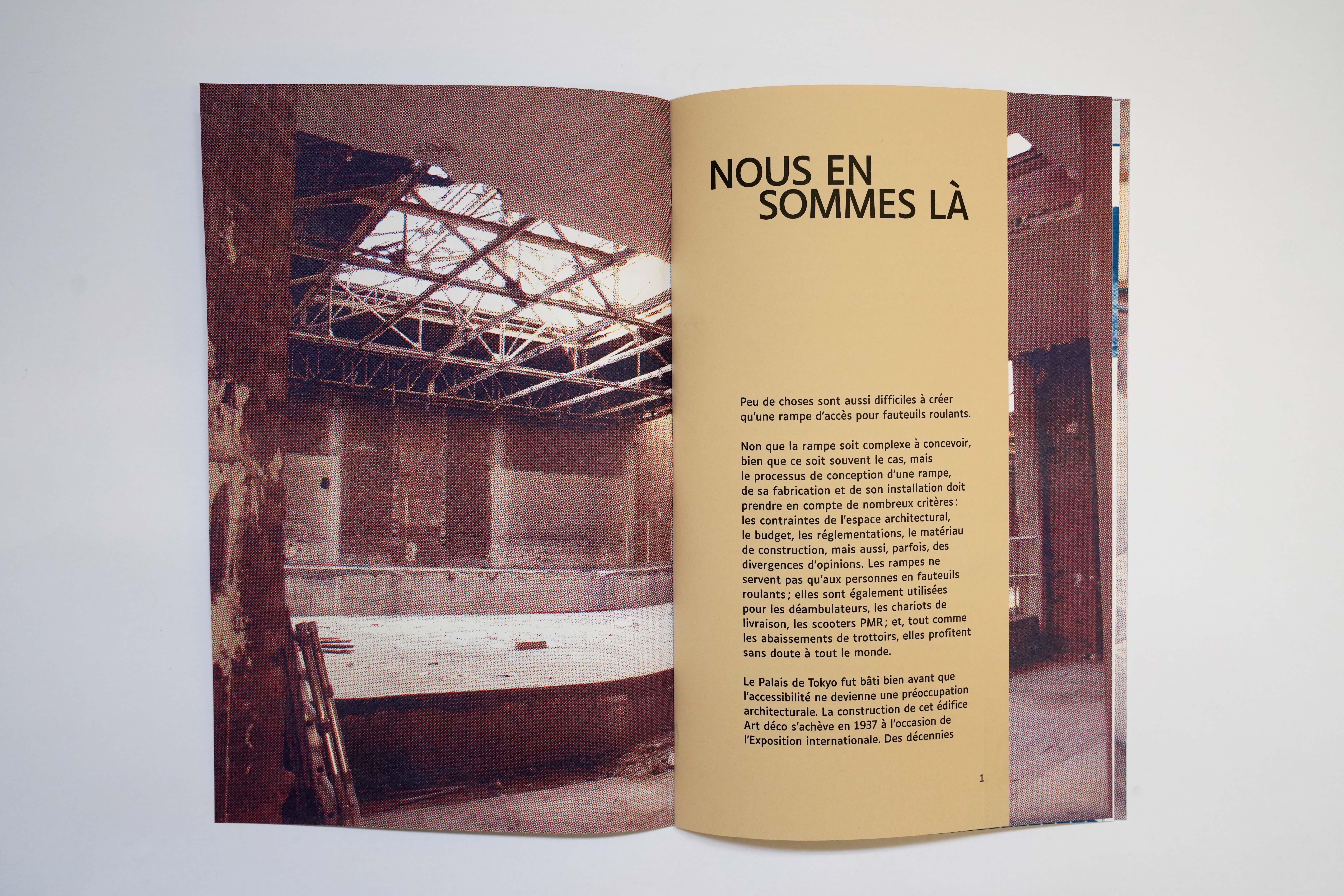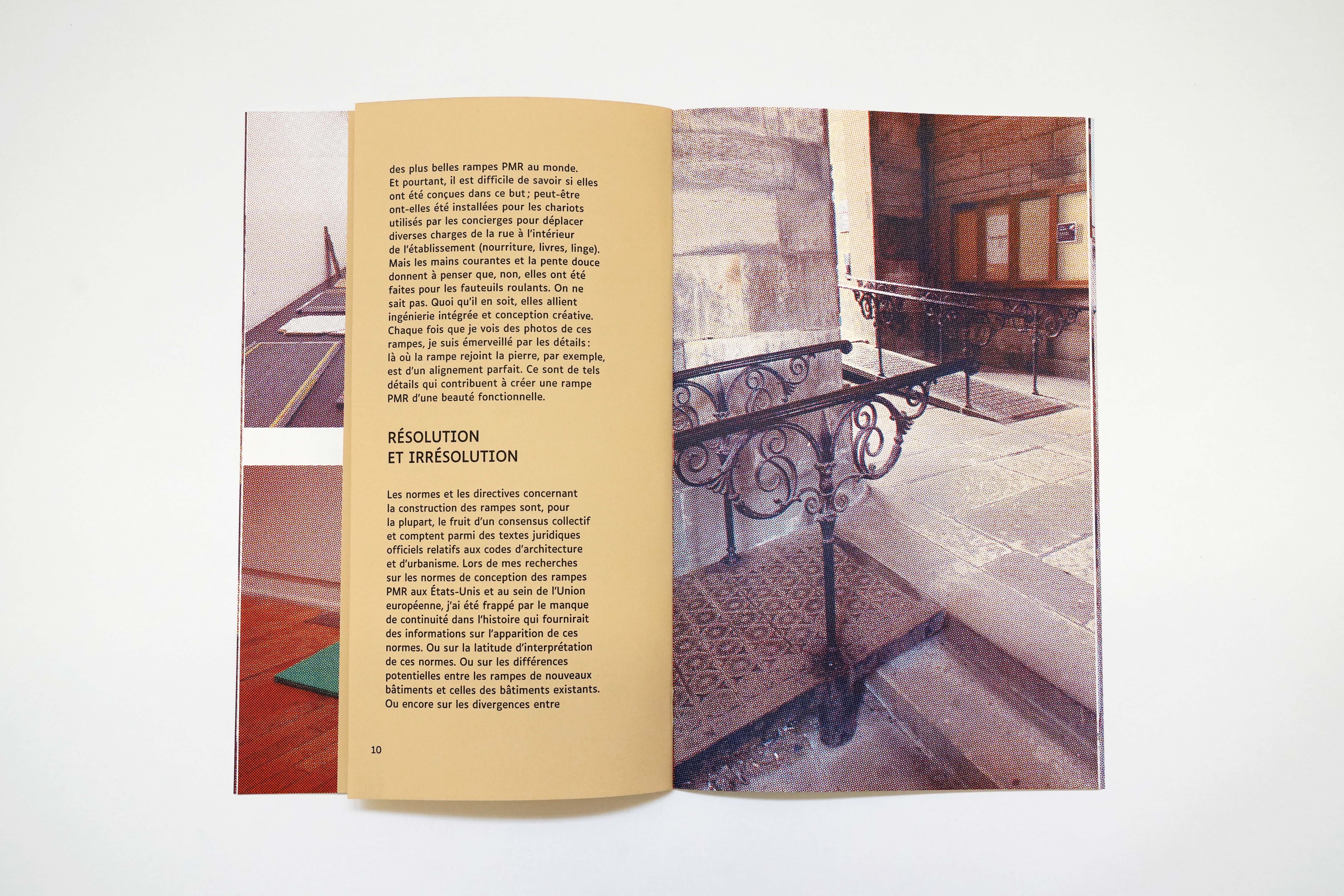 Ce livre d'artiste de Joseph Grigely réunit ses recherches et réflexions ainsi qu'une documentation visuelle autour des rampes d'accès et de son projet d'escaliers-rampe conçu pour un espace du Palais de Tokyo dans le cadre de son exposition personnelle This Is Where We Are. Comment l'accès pour chacun·e devient-il une responsabilité commune, et non plus seulement celle des personnes désigné·es comme « handicapé·es » ? Cette publication, qui comprend un essai de l'artiste expliquant pourquoi la conception d'une rampe est si difficile, interroge la notion d'accessibilité notamment à travers l'architecture des espaces et propose de la repenser pour en faire un médium à part entière.