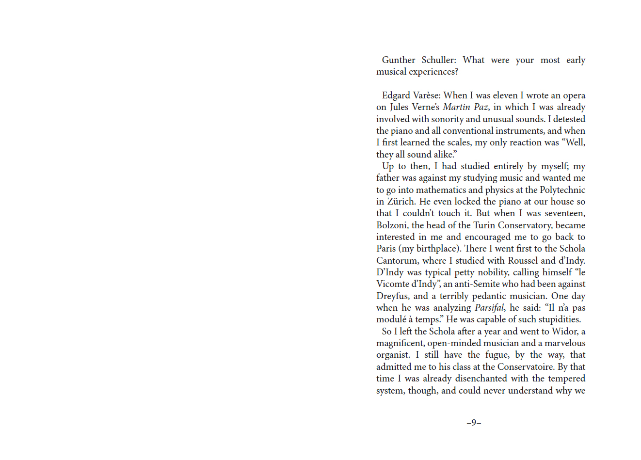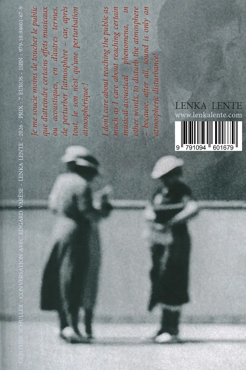 Quelques mois avant la disparition d'Edgard Varèse en 1965, Gunther Schuller passe le compositeur à la question : parcours et amitiés, collaborations, instruments nouveaux et rare liberté à réserver aux sons qu'il en sort... Pour la première fois publié en anglais et français, c'est là un testament rare pour tous les amoureux de « sonorités ».
