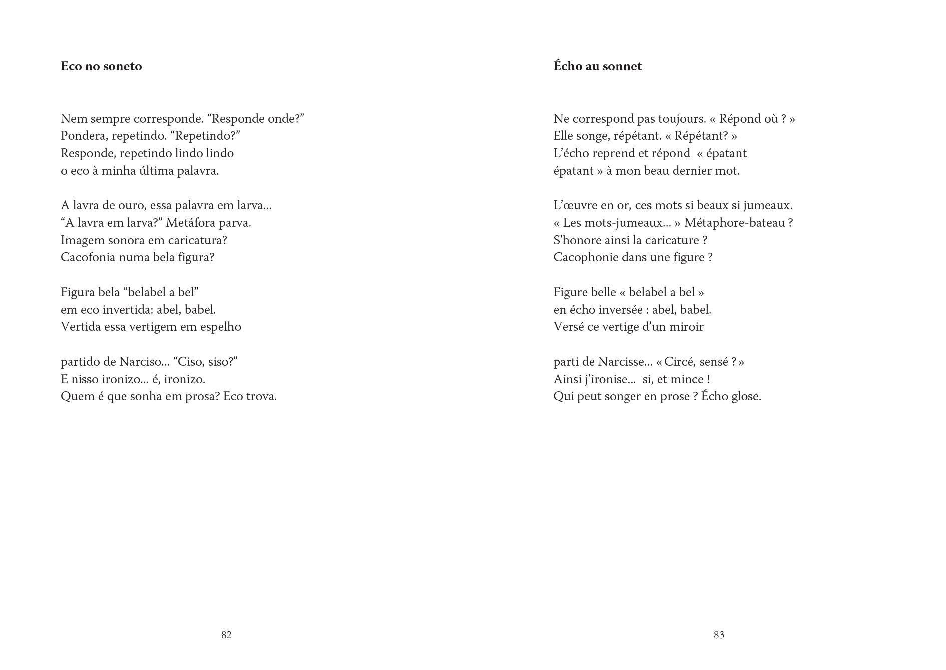 The collection of poems by the Brazilian writer, rewritten in French, in a process that includes translation and re-creation, combines with delicacy, ingenuity and great coherence a research on the relationship between language and Eros, personal reflections, extensive cultural references and philosophical questionings.