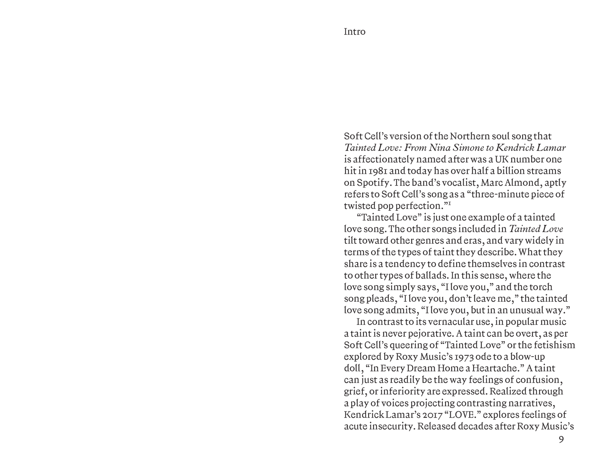 Tainted Love's essays are highly personal, meticulously researched love songs to a musical subgenre suffused with complex and often awkward emotions."