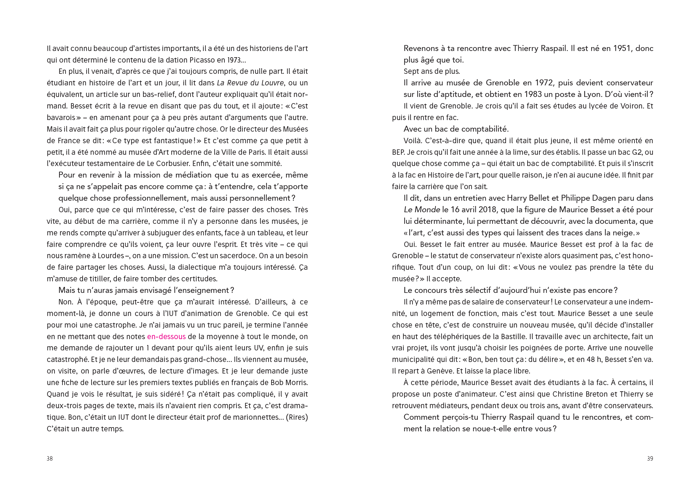 This book retraces Thierry Prat's career as a player and witness to the history of contemporary art in France for over forty years, through a series of interviews that highlight the main issues at stake.
