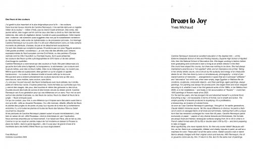 Monograph dedicated to Caroline Rennequin's flower paintings (gouaches on Indian paper), with texts by Yves Michaud and Émilie Ovaere-Corthay.