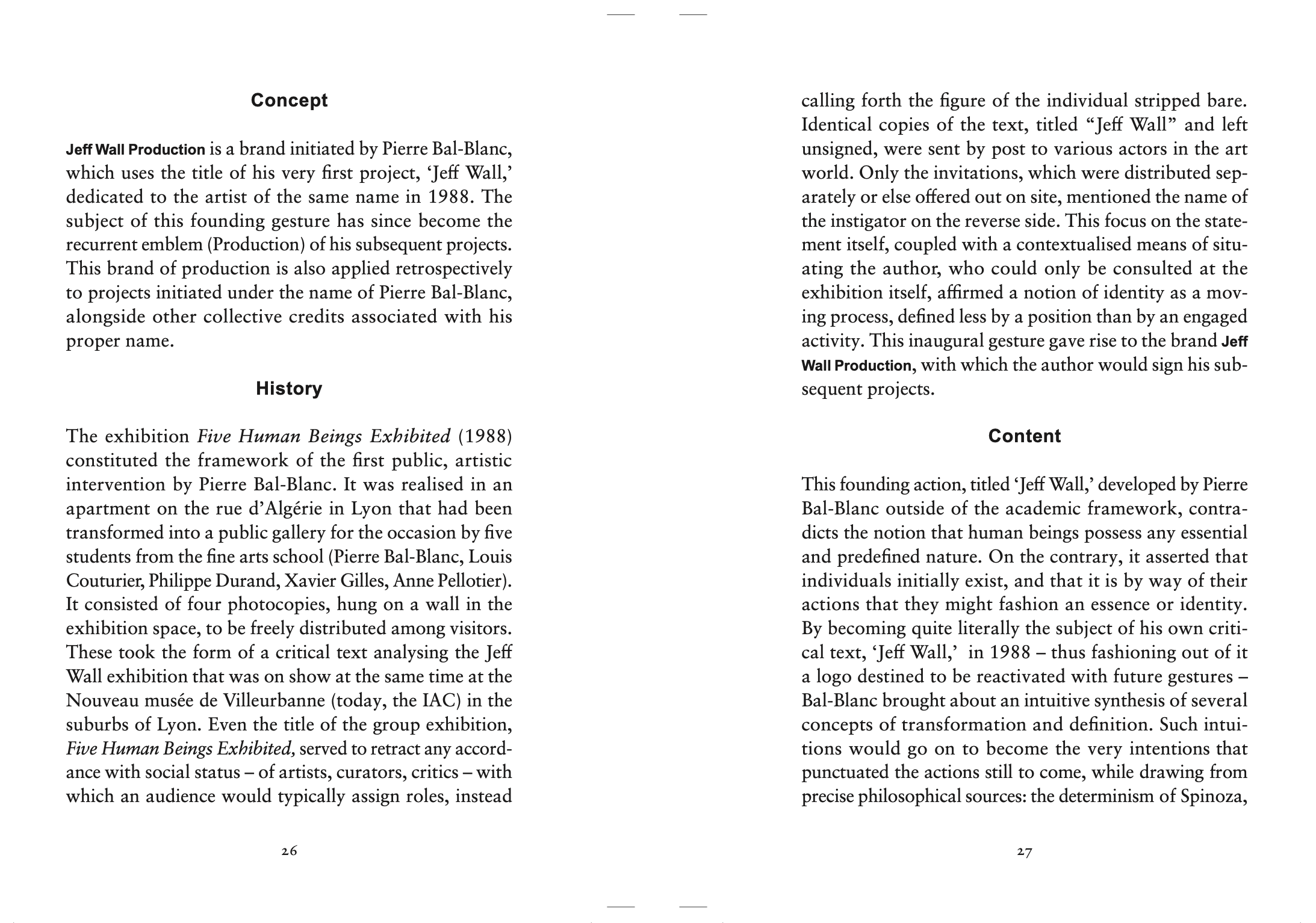 Jeff Wall and has since evolved into an artistic and curatorial platform encompassing exhibitions, performances, and critical essays. As a conceptual apparatus, it functions through the logic of scoring, branding, and philosophical bootlegging—recalling the subversive strategies of artists like