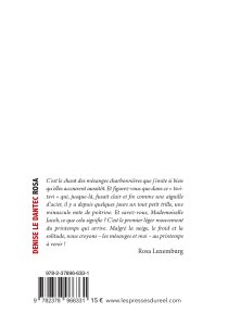 In this text-visual poem, Denise Le Dantec summons Rosa Luxemburg who, despite the violence of the struggles, the multiple disappointments and the imprisonments, never ceased to believe in the necessity of emancipatory struggles.