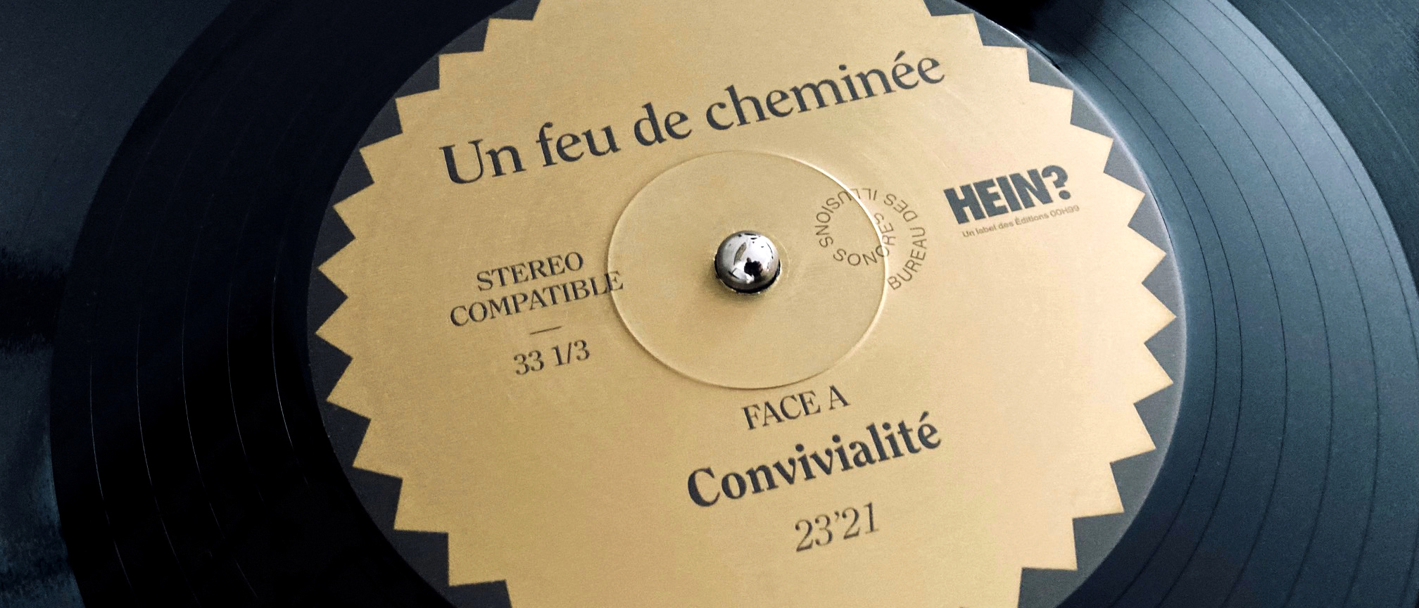 The simulation of the sound ambiance of a fireplace on a vinyl record, between ASMR, comforting subliminal soundtrack and conceptual (and slightly offbeat) object inspired by the tool records of the 50s and 60s (a record-object broadening the field of exploration of sound illusion in interaction with the apparent banality of reality, following the cult record Sounds of Silence).