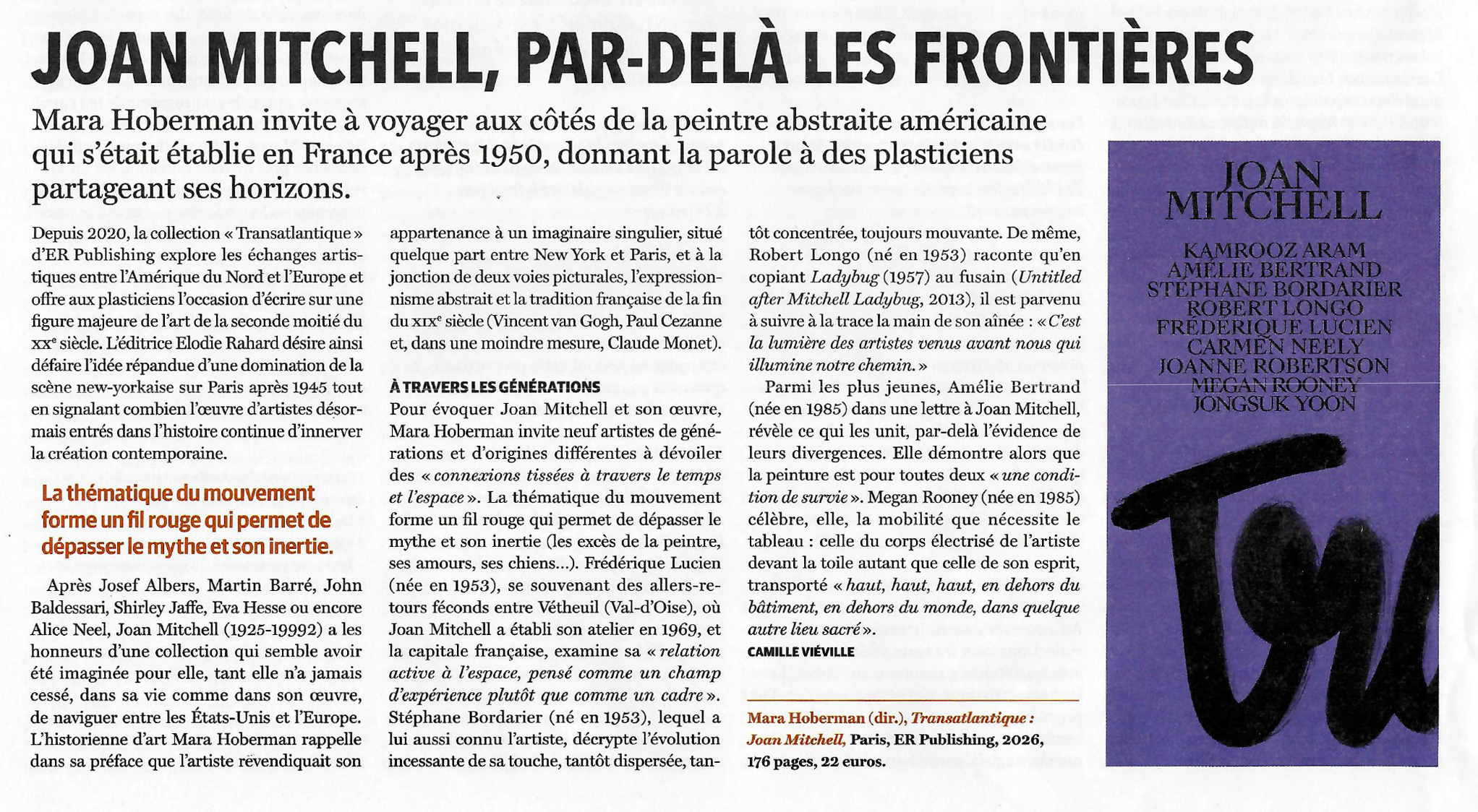 Joan Mitchell (1925–1992), one of the most important artists of the post-war period, is also a uniquely transatlantic figure. From the 1950s onward, as Mitchell shuttled back and forth between the United States and France, her work—and the discourse around it—developed across two continents, two cultures, and two languages. Invited by Mara Hoberman, nine artists, who are themselves based on either side of the Atlantic, reflect on Mitchell's life, work and enduring impact.